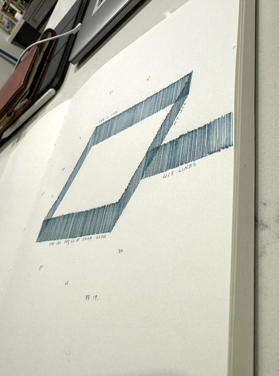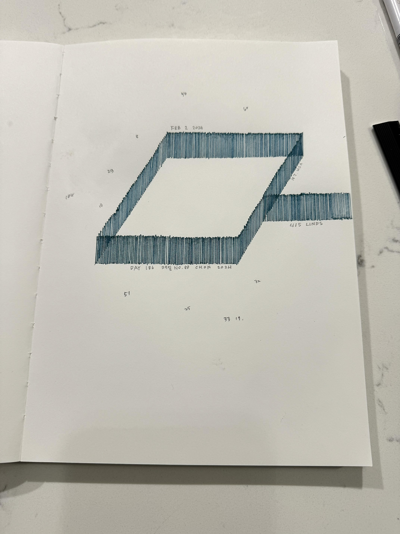 Day One Hundred Eighty Six, 매일 No. 88, 전이린, 종이 위에 잉크, 17cm x 25cm, 2024