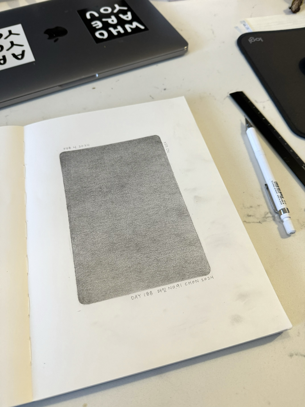 Day One Hundred Eighty Nine, 매일 No. 91, 전이린, 종이 위에 연필, 17cm x 25cm, 2024