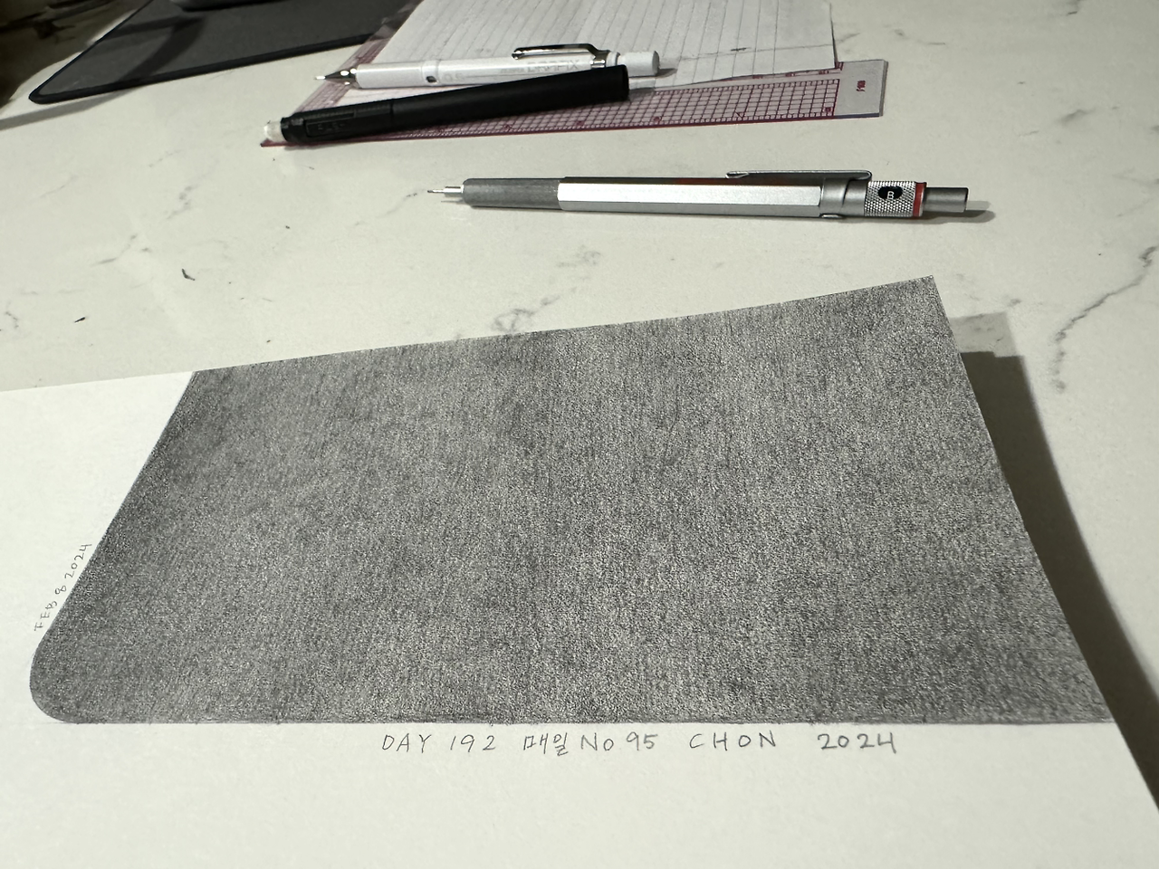 Day One Hundred Ninety Two, 매일 No 95, 전이린, 종이 위에 연필, 17cm x 25cm, 2024