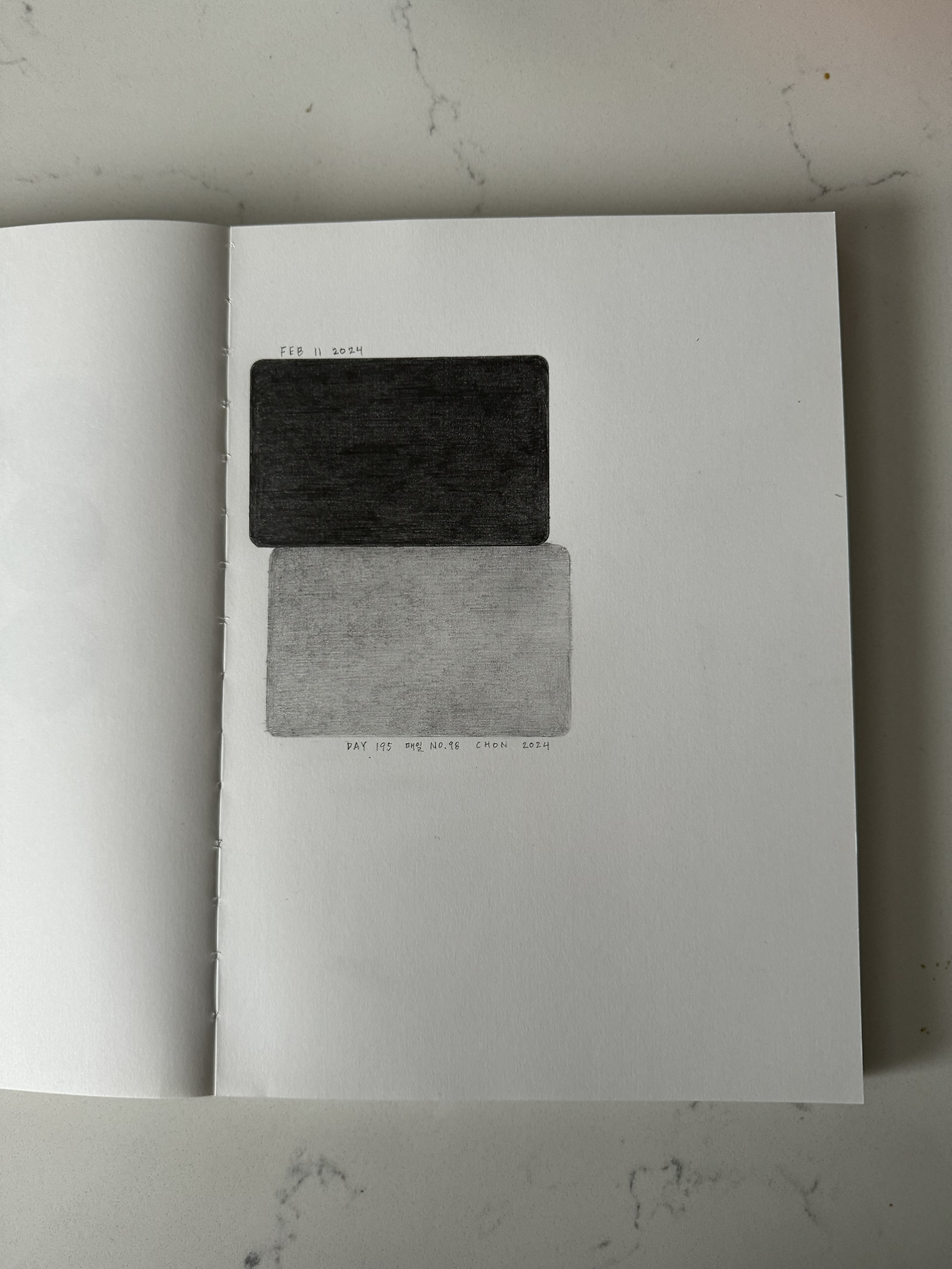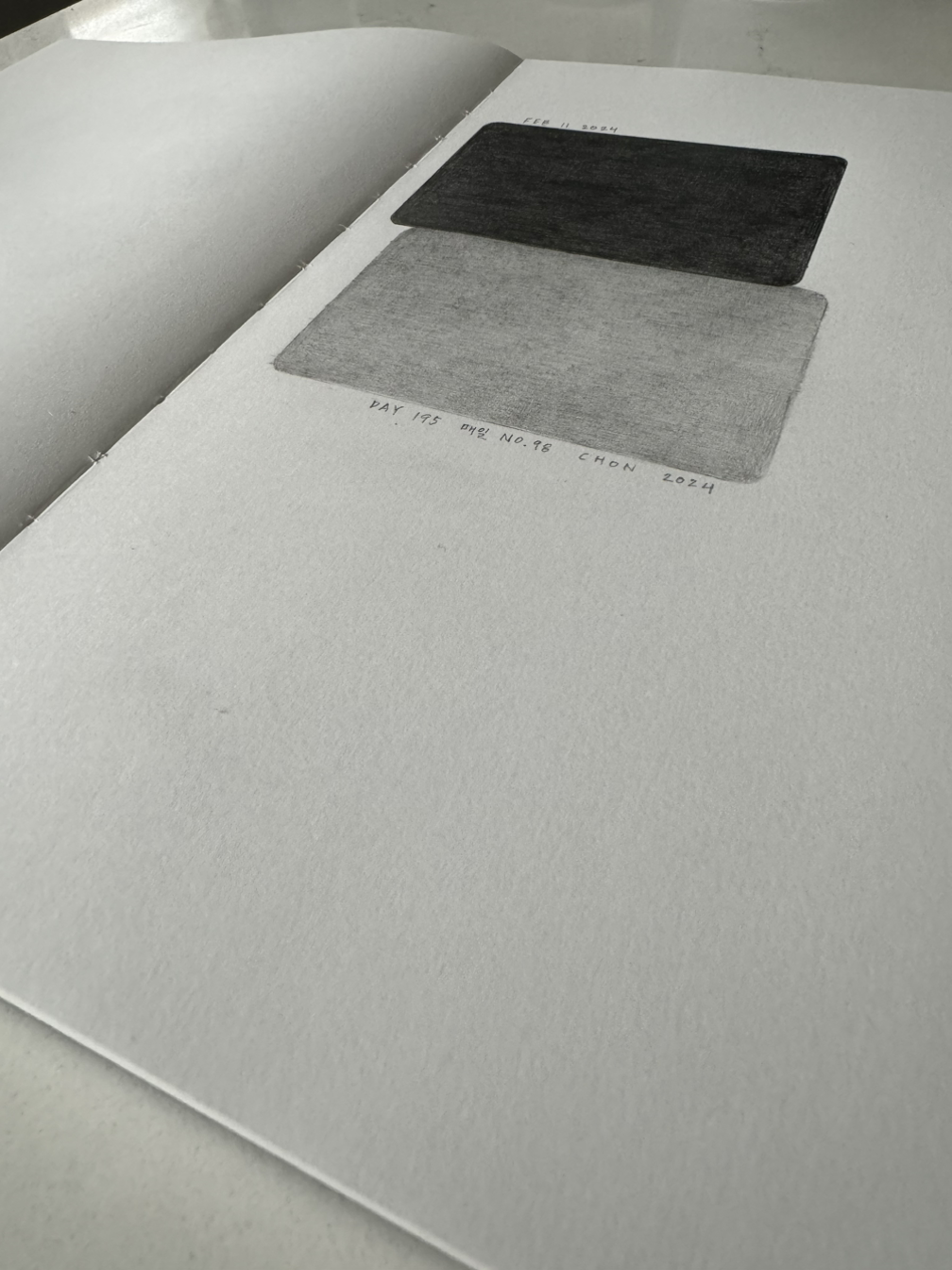 Day One Hundred Ninety Five, 매일 No. 98, 전이린, 종이 위에 연필, 17cm x 25cm, 2024