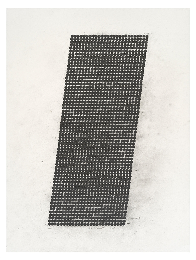 Erin Chon is a painter/drawer who has worked individually and collaboratively on the current issues of identity, gender, domesticity, and immigration, using symbolic images, marks, and texts in daily life. Currently she expands her interests into process-based projects that record daily existence of herself. By repeating dots and lines, the most basic elements of art, she transforms invisible concepts of time into perceptible images of drawing. She has taken part in many solo and group exhibitions both in South Korea and in the United States.