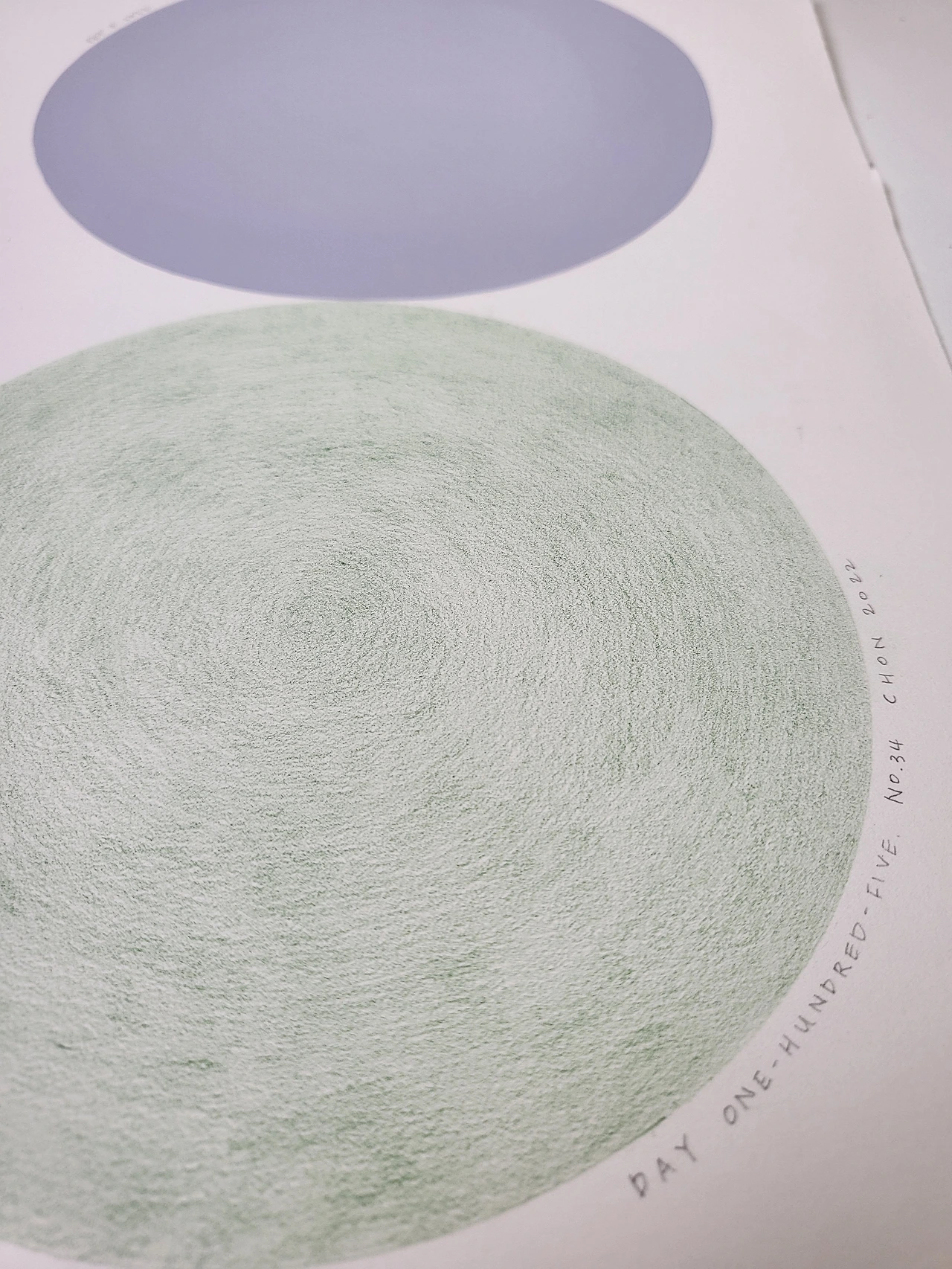 Day One-Hundred-Five, No.34, 전이린, 종이 위에 색연필과 아크릴 물감, 21cm x 29.5cm, 2022