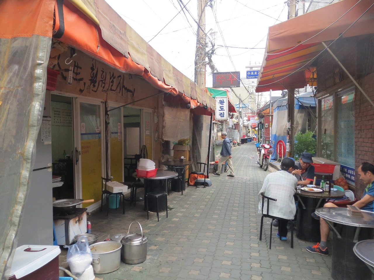나는 이곳에서 도시환경정비로 사라진 줄 알았던 ‘피맛골’을 발견하고 반가움을 감출 수 없었다. 종로 쪽 가까운 이면도로에는 허름한 음식점들이 여전히 남아있었다. 이곳이 피맛골의 끝자락이라고 했다. 1920~30년대 개량 한옥 단지가 들어선 이래로 발전을 멈춘 이곳을 즐기고 싶다면, 자연스레 이곳에 사는 서민과 어울리며 융화되는 방식을 택해야 한다고 본다. 땀 흘린 노동 후에 값싸게 즐길 수 있는 먹을거리와 대중적 술을 파는 곳을 헤집고 들어선 젊은 취향의 음식점과 카페, 술집은 복고를 지향할 뿐이지 가격대가 만만치 않았다. ‘가게맥주집’을 재현했다며 ‘슈퍼’라는 가게명을 단 술집은 마치 아이디어 창업처럼 알려졌지만 나 같으면 하류층을 볼거리 삼아 그런 곳에 앉아 비싼 술과 안주를 먹고 싶지 않을 것 같다. 얼마 전 부암동의 오래된 구멍가게 앞에서 외국인 세 명이 인도에 내놓은 플라스틱 의자에 앉아 캔맥주를 사 마시는 것을 보곤 ‘뭔가 아는’ 사람들이란 생각이 든 적이 있다. 독특한 이유로 유명해진 지역을 찾는다면 일단 그곳 본연의 분위기를 즐길 줄 알아야 한다. 소비력이 있는 층이 멋들어진 음식을 먹고 싶다면 다른 곳에 가면 그만이다. 꼭 이런 곳에까지 비집고 들어와 위화감을 조성할 필요가 있을까.