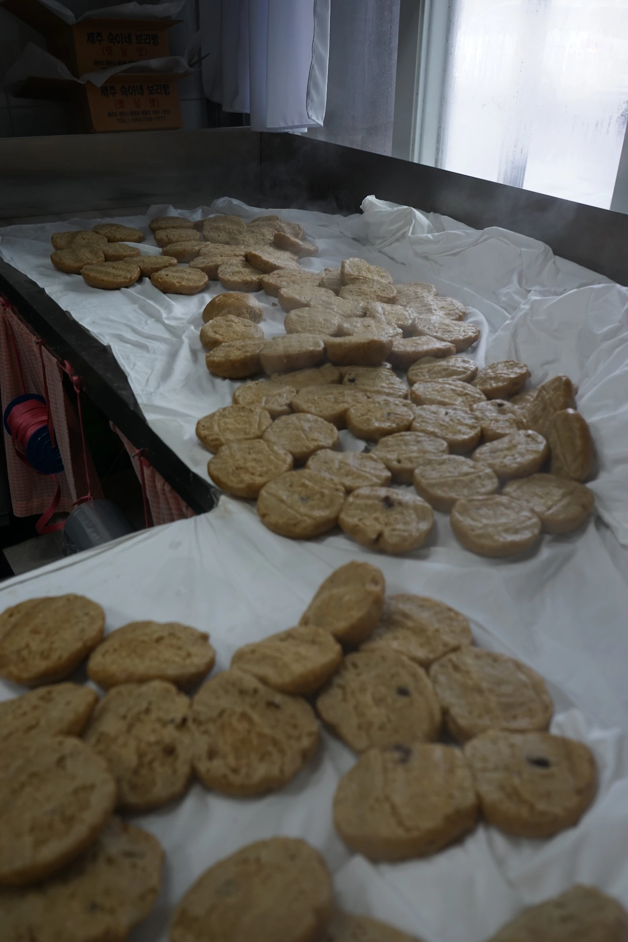 숙이네 보리빵의 맛의 비결을 묻자, 아주머니는 직접 재배한 보리를 사용했다고 말씀하셨다. 마침 내가 찾아간 시간이 오늘 마지막으로 보리빵을 찌는 시간이라 하셨다. 찜통 역할을 하는 가마솥에서 다섯개의 판이 나오더니 오늘의 마지막 보리빵을 거둬들이신다. 그 빛깔과 향기 역시 구수하다. 40여년을 보리빵을 팔았다는 아주머니는 욕심없이 오랫동안 보리빵을 쪄서 팔거라 말씀하셨다. 재료가 떨어지면 그만팔고, 피곤하면 쉬는 삶을 살겠다는 말씀에서 고수의 품격이 느껴졌다. 시간을 잘 맞춘 덕분에 막 쪄낸 보리빵을 먹을 수 있었다. 팥을 품은 보리빵과 자신을 품고 있는 보리빵을 각각 구매했다. 팥은 달았고, 자신을 품은 보리빵은 별맛 없었다. 그러나 글로 표현할 수 없는 깊은 맛이 있었다. 굳이 글을 배우지 않은 아이도 보리빵을 먹으면 ‘맛이깊다’라는 말이 자연스럽게 나올 법하다. 예약손님을 위한 빵을 가지런히 상자에 담는 아주머니에게 저 빵을 좀더 사고 싶다는 말을 하고플 정도로 욕심이 났다.
