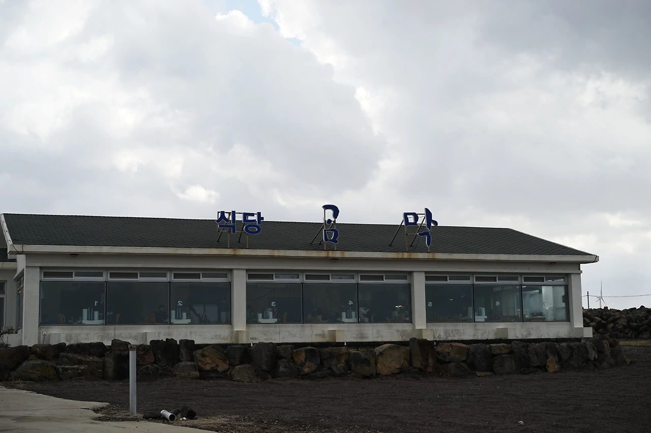 바다가 옆이다. 겨울제주바람, 그것도 바다의 힘을 받는 제주김만복 식당 앞에서 줄을 서는 것은 그 자체로가 수행이다. 어떤 사연으로 여기까지 왔을까라는 생각이 들만큼 수십대의 차량이 식당앞에 주차를 하고, 식당이 열리기를 기다린다. 나 역시 차안에서 식당이 열리기를 기다리다 식당이 열리기 20분전에 차량에서 나와 맨먼저 4입구에 섰다. 이 식당은 인간의 기다림을 마케팅 기법을 사용하는 것마냥 사람을 가슴조리게 한다.
