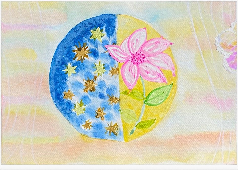 저의 보완은 단순한 장식이 아니라, 참여자의 내적 밝음과 긍정이 세상 속에서도 더욱 크게 드러날 수 있도록 돕는 손길이었습니다. 별빛이 꽃을 비추고, 꽃의 빛이 밤하늘로 스며드는 듯한 연결을 강조했습니다.