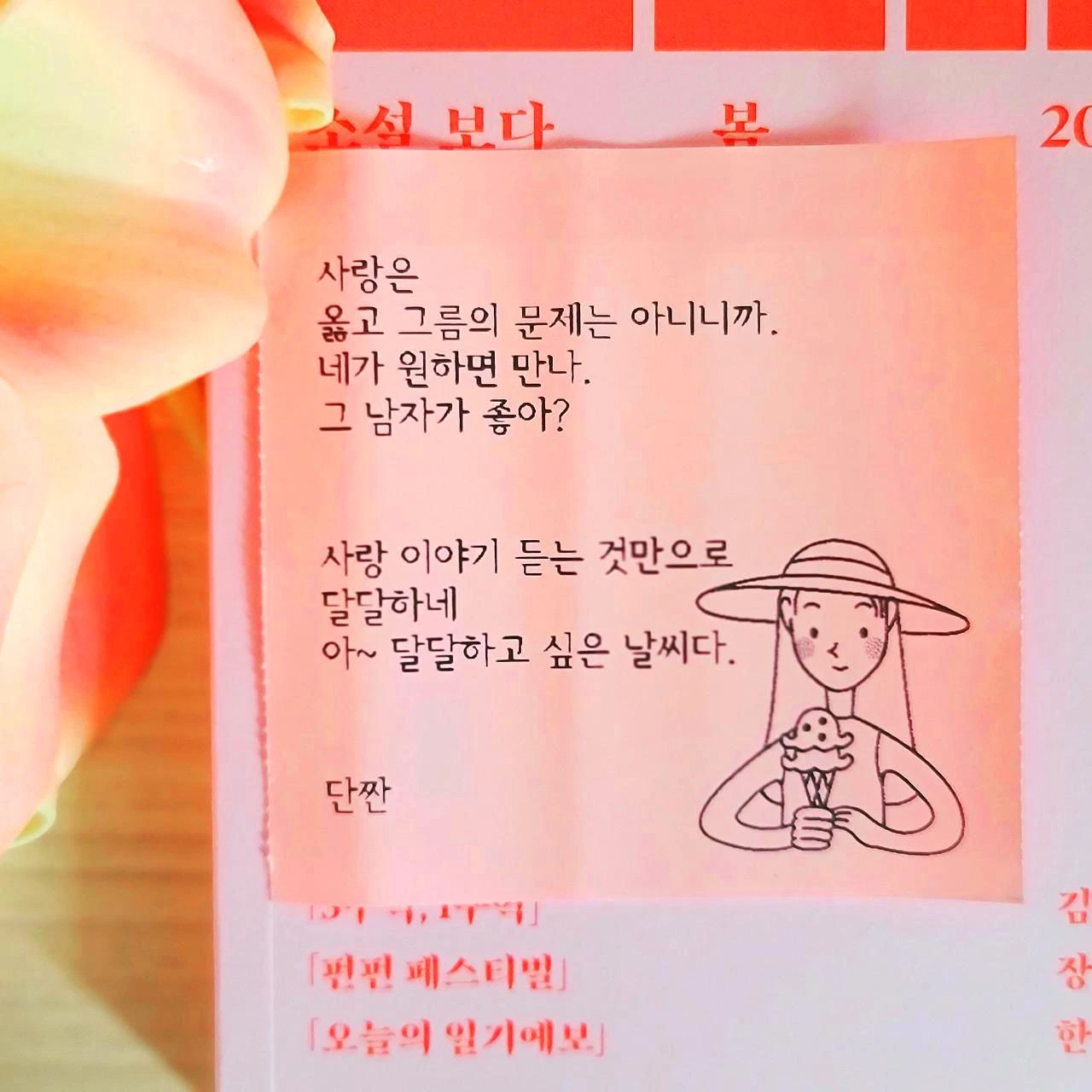 단짠 노트는 매주 화요일 아침 8시에 배달합니다. 지금 당신이 듣고 싶은 말이 도착할 거예요. 화요일 아침 글 도시락을 배달합니다. 함께 해 주셔서 감사합니다. 단짠^^ * 단짠 노트 시즌1의 내용을 완성도 있게 다시 정리하고 있습니다. 글도 생각도 한 뼘씩 자랐을까? 살펴보는 중입니다.