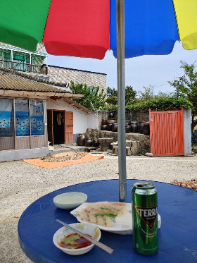 길을 가다 텅 빈 의자를 보면 무작정 앉고 싶어 짐을 느낀다. 시골집에 왔다. 지난번 콘크리트 마당을 뚫어 비치파라솔을 설치했었는데, 그동안 깜박 잊었다. 대문을 열고 마당에 들어서니 노모의 반가움과 함께 비치파라솔의 의자가 눈에 띈다. 어서 앉고 싶었다. 오후 2시. 이카루스의 날개를 녹여버릴 것 같은 무더위는 아니지만 오후의 햇살이 제법 뜨겁다.