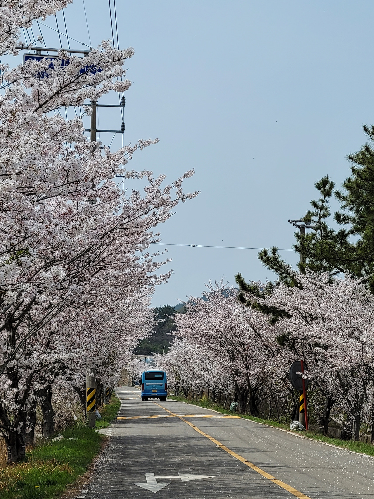 점심을 먹고 다시금 벚꽃길로 들어선다. 흐드러진 벚꽃길로 시골버스가 지나간다. 꽃비를 맞으며 유유히 사라지는 버스의 뒤꽁무니를 유심히 바라본다. 새삼스럽게 웰다잉을 생각하게 한다. 벚꽃처럼 화려하게 살지는 못했으나 앞으로는 동백꽃처럼 살고 싶은 마음이다. 마지막 순간까지 붉은 꽃의 자태를 지니다 한 순간에 똑떨어져 사라지는 동백꽃처럼 말이다.