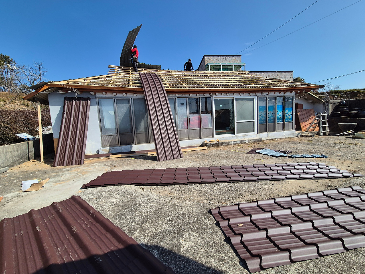 아랫집은 컬러 지붕개량을 했고,