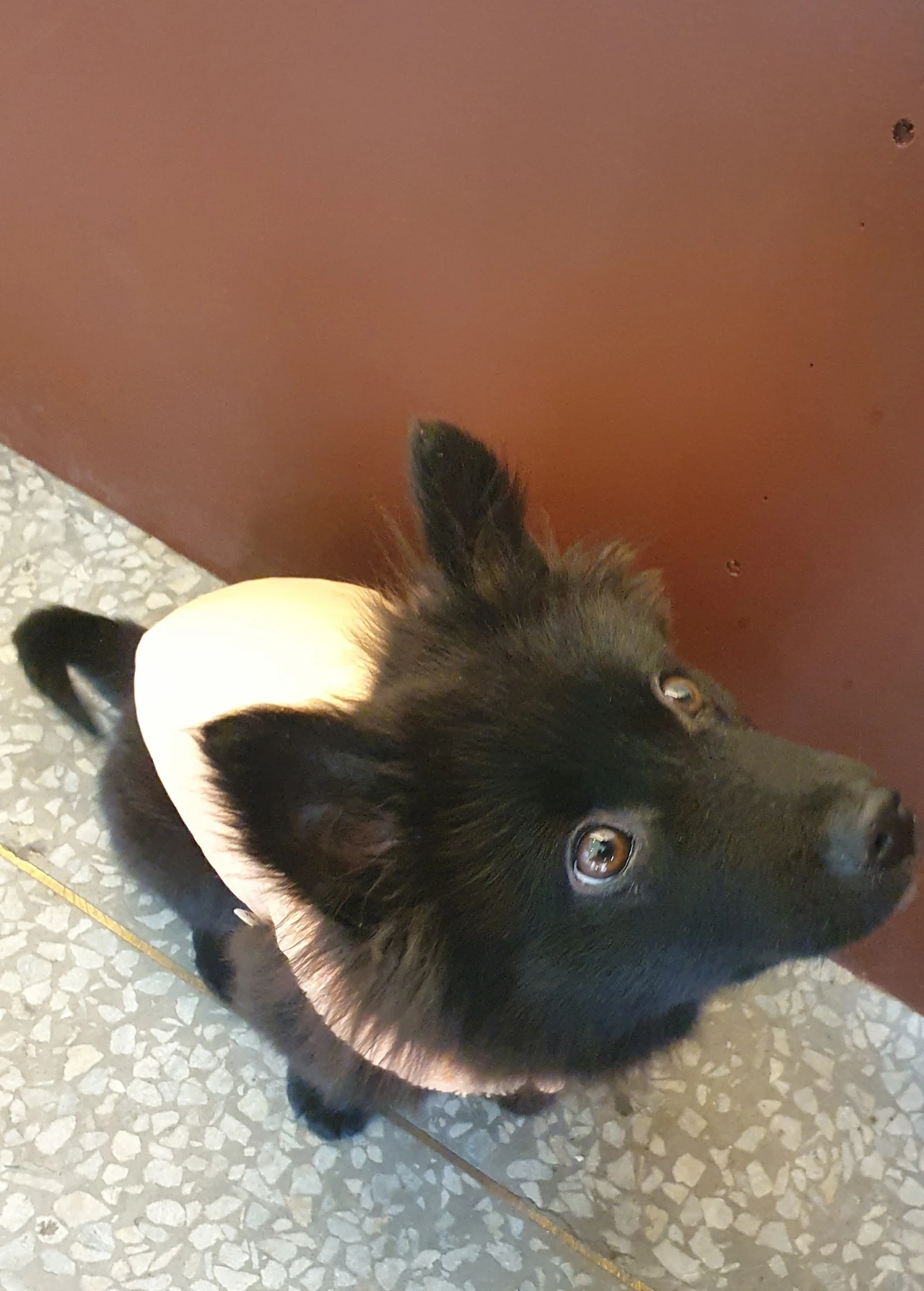 카페 문 앞에 작고 검은 생명체 하나가 저를 쳐다보고 있었습니다. 존재 자체로 귀여움을 한껏 뿜어내는 강아지를 보며, 입구에서 환호의 소리를 질렀습니다. 혹여나 강아지가 문틈으로 빠져나갈까 살짝 연 문틈을 다리로 막으며 힘겹게 들어갔습니다.