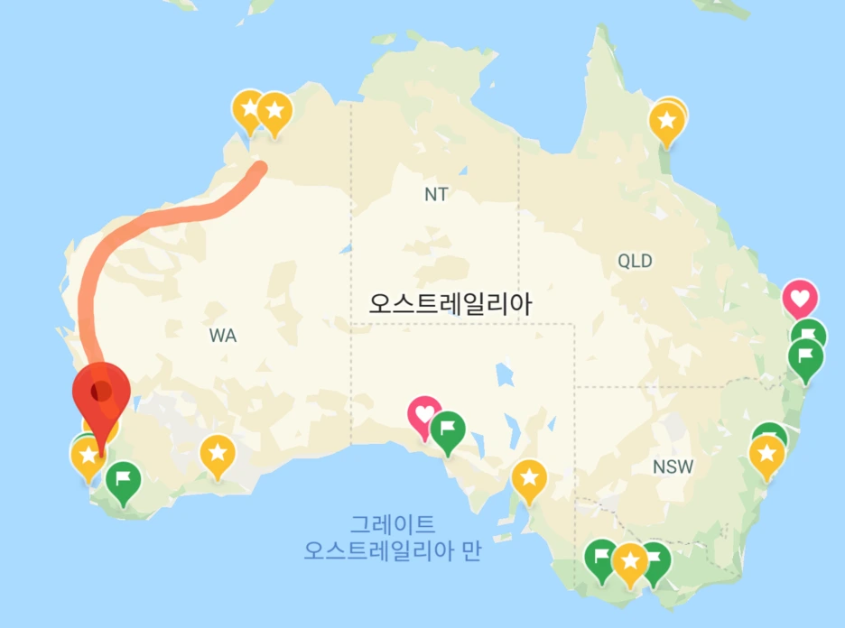 서호주에서 만나는 대부분의 차는 카라반을 싣고 다니는 차나 캠핑카다. 라이프스타일이 한국과 격렬하게 다르다. 사진의 차량은 좀 색달랐다. 캠핑 버스에 차를 끌고 다닌다. 아마 집을 가지고 다니면서 어딘가에 정착해 차로 다니려는 심산인듯. 자연 만큼 삶도, 보이는 모든것이 내가 보지 못했던 것들이다. 정말 떠나오길 잘했다.