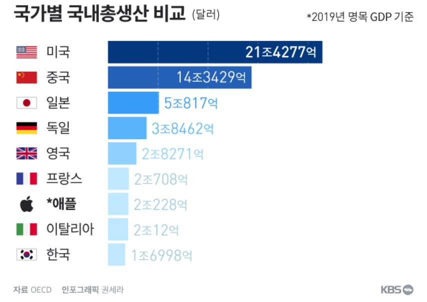 애플 '시총 2조 달러'는 얼마나 큰 규모일까?
