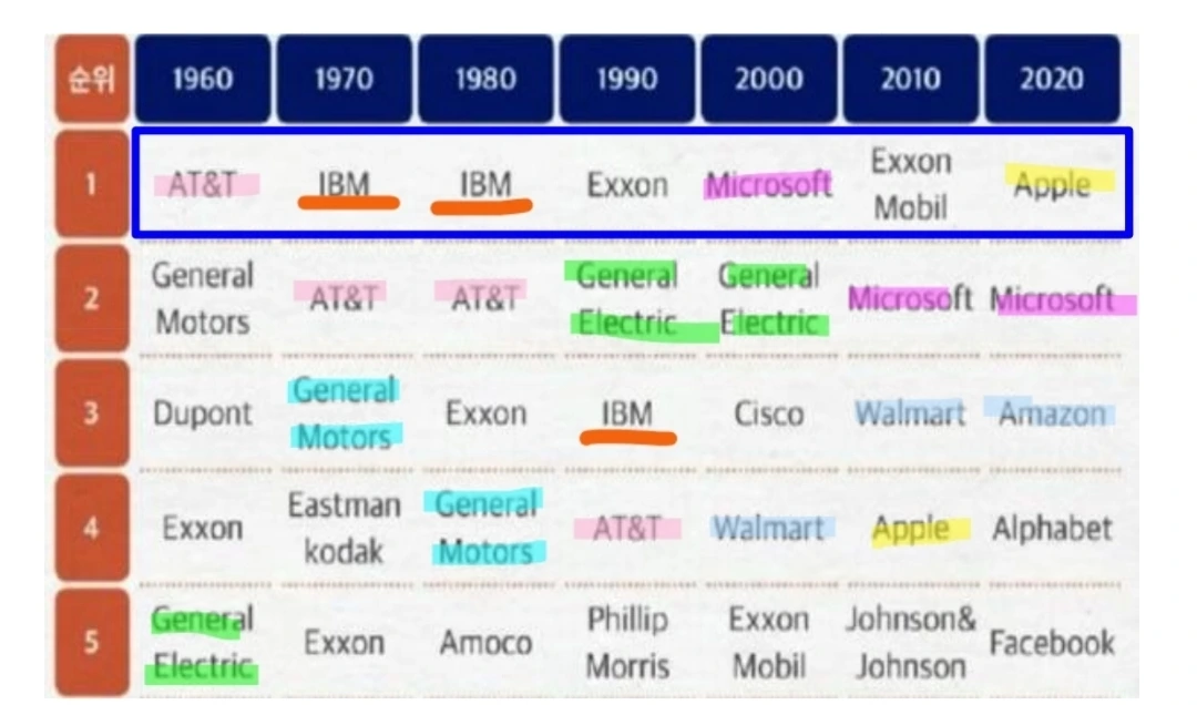 1960년부터 지금까지 시가총액 상위 기업이