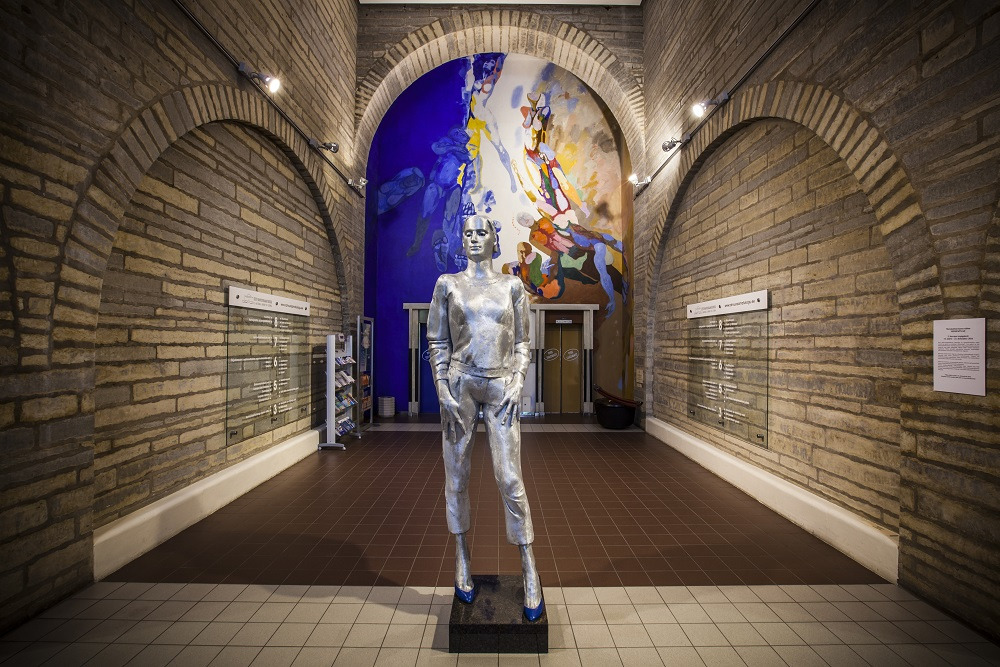 도서관 정문 초입에 있던 파란 구두를 신은 여자의 동상이 신기해 투어 담당 사서에게 조각상에 대해 질문을 했습니다. 사서를 나타낸 조각상이라고 하더라고요. 파란 구두가 조용하고 우아해 보이지만 다리로는 누구보다 열심히 치열하게 일하는 사서들을 나타낸 것이라고 합니다. 어딘가 모르게 자신감 있어 보이는 조각상이 정말 사서의 분위기를 품고 있는 것 같기도 합니다.