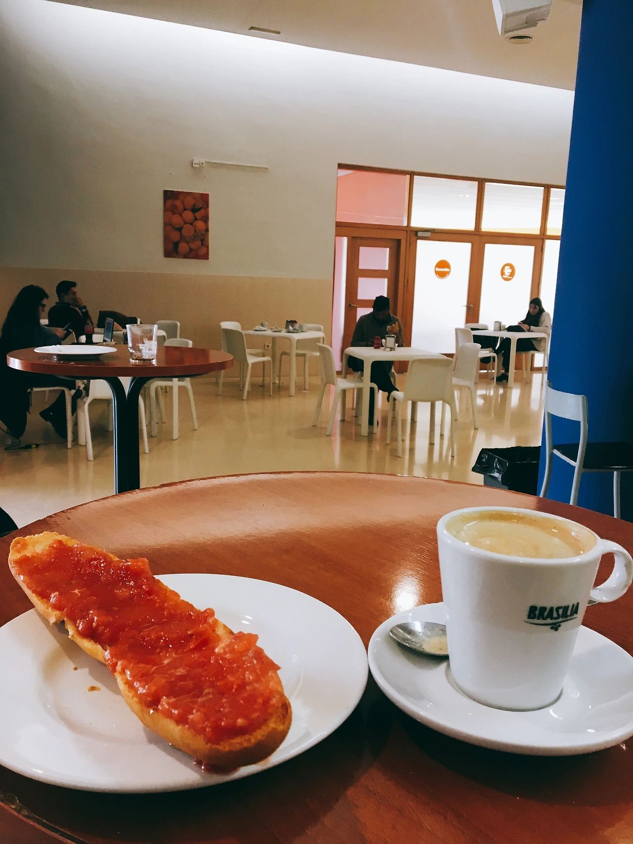 스페인은 다른 유럽과 마찬가지로 아이스커피를 마시지 않는다. 보통 간단한 샌드위치나 커피, 음료, 주류 등을 파는 카페테리아(cafeteria)나 바(bar)에서 커피를 주문할 수 있는데 한국에서 흔히 보이는 카페는 알리칸테에서 찾을 수 없었다. 카페테리아에서 마실 수 있는 커피 종류도 단순했다. 에스프레소를 일컫는 ‘카페 솔로(Cafe solo)’, 보통의 카페라떼인 ‘카페 콘 레체(cafe con leche)’, 카페 콘 레체보다 우유가 좀 덜 들어간 ‘코르타도(cortado)’ 등을 주문할 수 있었다. 좀 더 많은 종류가 있는 곳에서는 ‘카페 봉봉(cafe bonbon)’이라고 매우 단 연유 시럽을 넣은 커피와 우리가 자주 마시는 아메리카노가 있었다. 하지만 일반적으로 아메리카노를 파는 곳은 드물었고 메뉴에 아이스는 아예 존재하지 않았다. 얼어 죽어도 아이스커피만 마시던 당시의 나에게 스페인의 더위에서 뜨거운 커피는 견딜 수 없는 존재였다.