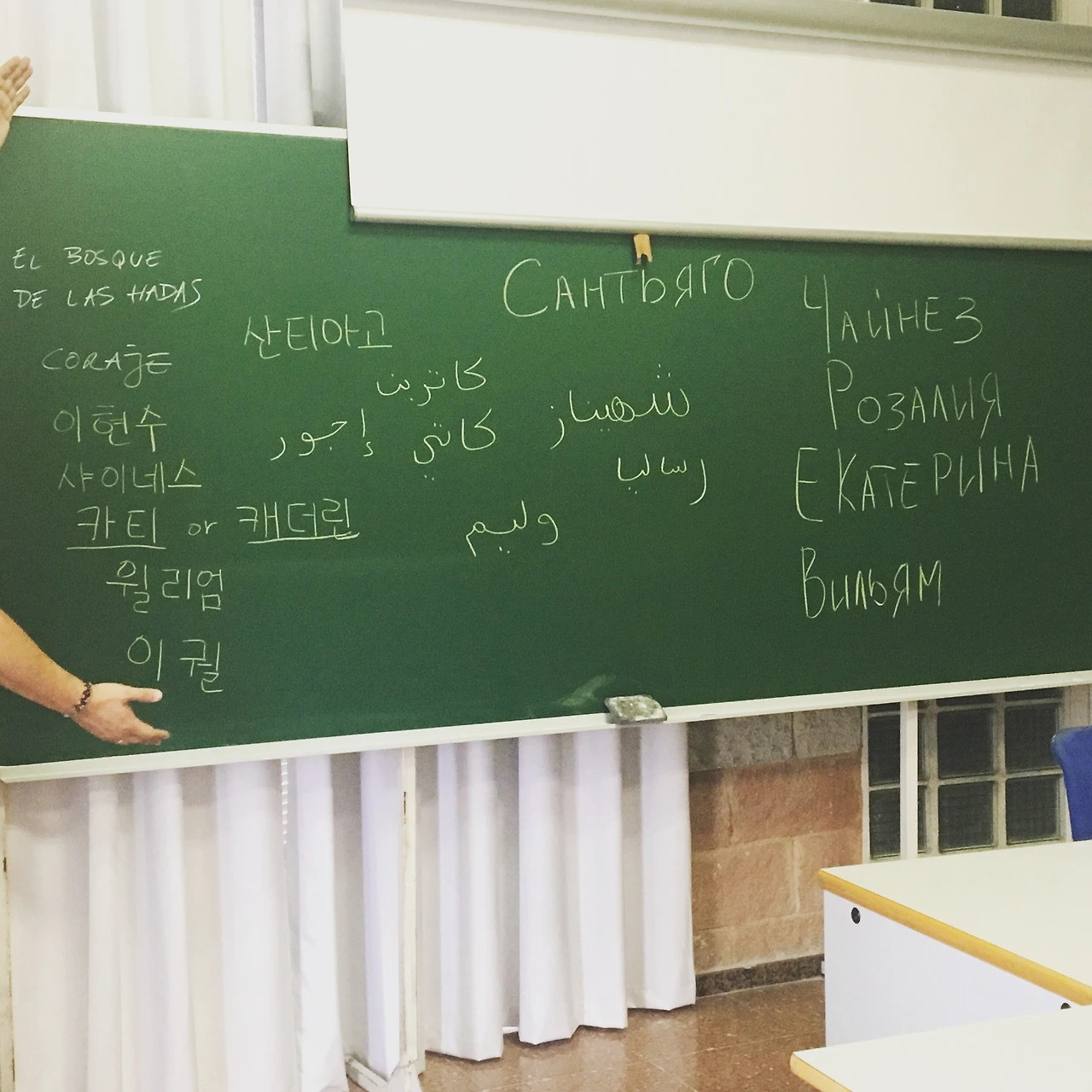 기초반이었기에 반에서 우리끼리 대화를 할 땐 주로 영어를 사용했다. 영어 대화에 기가 죽어 “난 영어도 잘 못해”라고 말하면 다비드는 “나도 한국어 못해. 스페인어도 못하고 그런데 너는 영어 다 알아듣잖아. 내가 보기엔 아주 잘하는데? “라고 웃으며 이야기해줬다. 실제로 다비드는 미국 공대 교수라는 명성에 맞지 않게 스페인어 실력이 형편없긴 했다. 하지만 주눅 들지 않고 항상 열심히 했다. 그런 다비드는 한 달만 수업을 듣고 개강 때문에 다시 미국으로 돌아갔다.