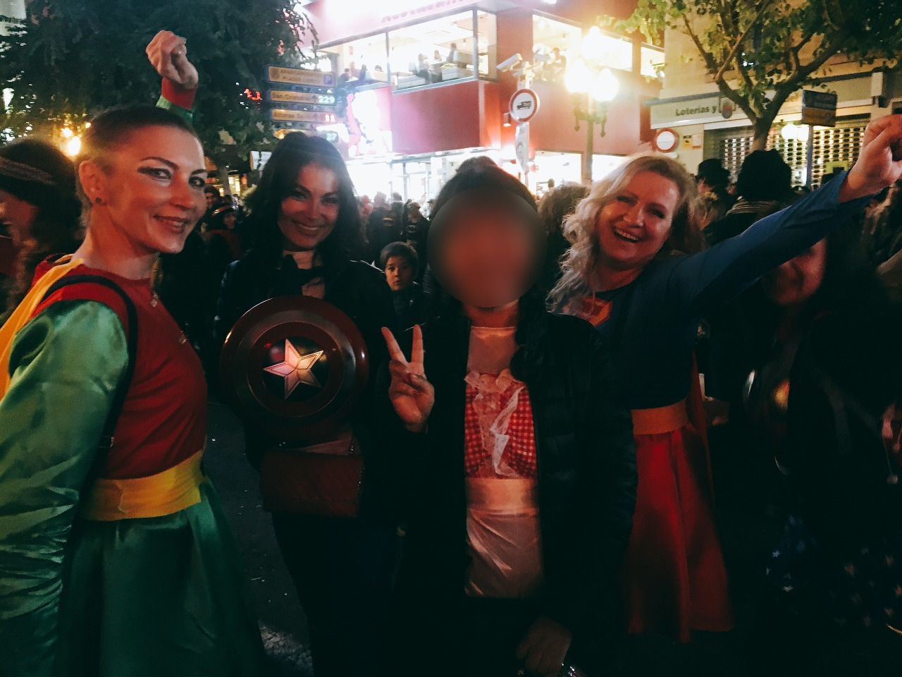 무려 일주일 동안 아나(Ana), 오이아나(Ohiana)와 함께 알리칸테 인근의 분장 의상 집은 다 찾아간 것 같다. 처음에는 시내 근처 가게만 찾아보다 나중에는 구글맵을 보고 코스프레 의상을 파는 곳은 다 찾아 외곽 아웃렛까지 같다. 내가 머물 당시에는 ‘수어사이드 스쿼드의 ‘할리퀸’ 복장이 유행이었다. 옷가게 마다 할리퀸 복장은 가장 잘 보이는 곳에 걸려있었다. 그 복장을 선택했다가는 길거리에서 같은 차림의 사람들을 1분 거리로 계속 만날 것 같았다. 한국에 비해 변장 도구나 의상이 조밀하지 못해 마음에 드는 의상을 찾는 것이 쉽지 않았다. 아나와 오이아나는 결국 작년에 입은 의상을 입기로 하고 나는 가장 저렴하고 무난한 빨간 망토 의상을 구입했다.