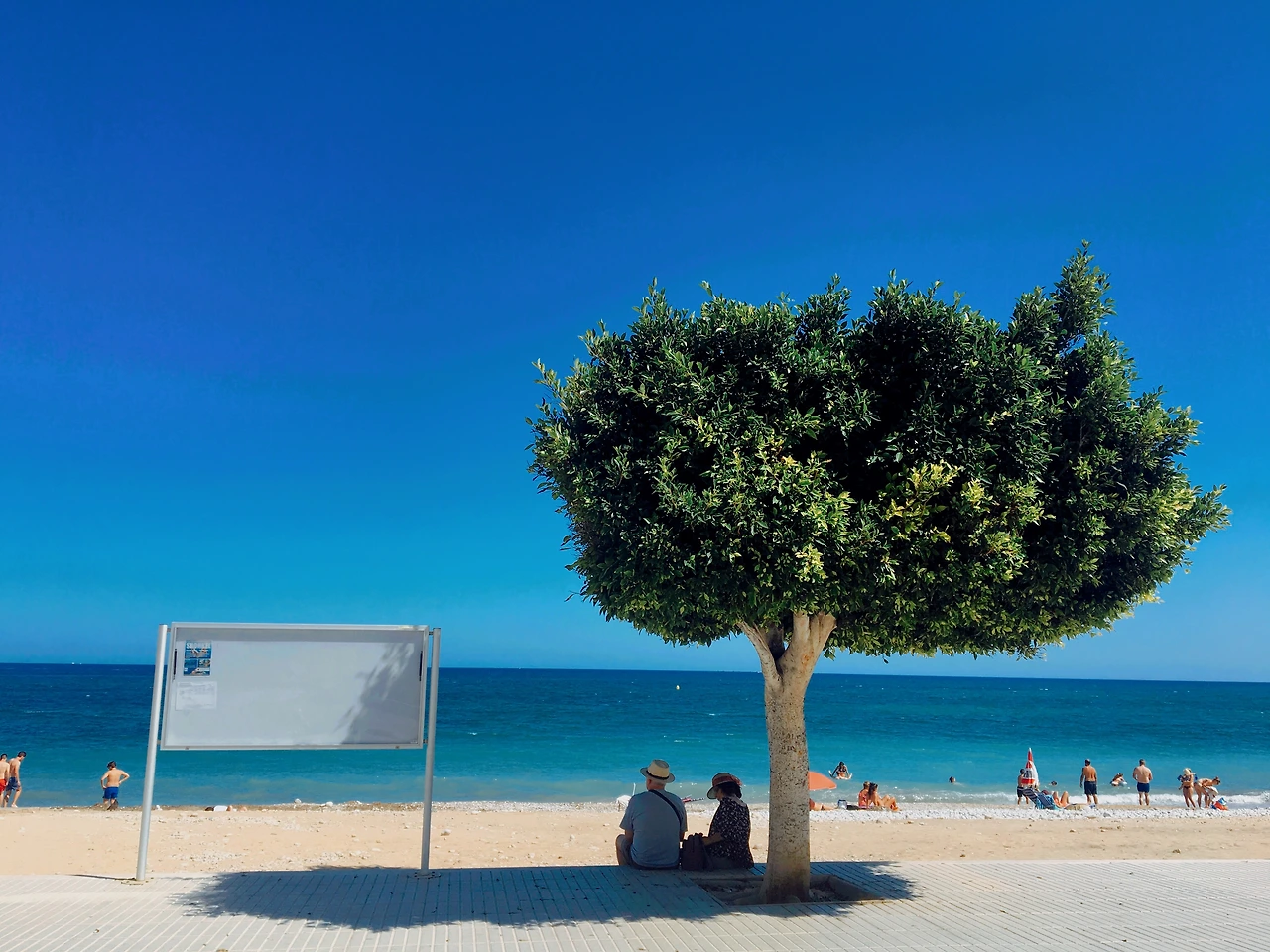 아주 작은 기차역인 알테아 역에서 내리면 바로 바다가 눈앞에 펼쳐진다. 지도를 볼 필요도 없다. 내려서 보이는 방향대로 바다를 따라가면 된다. 조용하면서 따뜻한 지중해가 눈앞에 펼쳐진다. 해안가로는 작은 레스토랑들이 들어서 있고 많지도 그렇게 적지도 않은 손님들이 앉아서 식사와 음료를 즐긴다. 수영을 즐기는 사람보다는 그냥 산책을 하거나 파라솔에 누워 혹은 벤치에 앉아서 바다를 바라보는 사람들이 더 많다.
