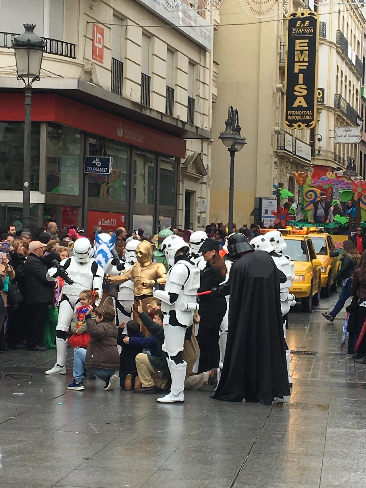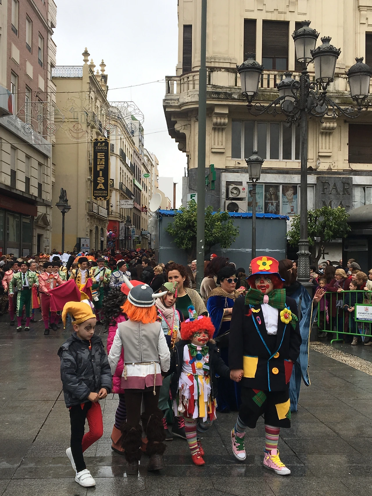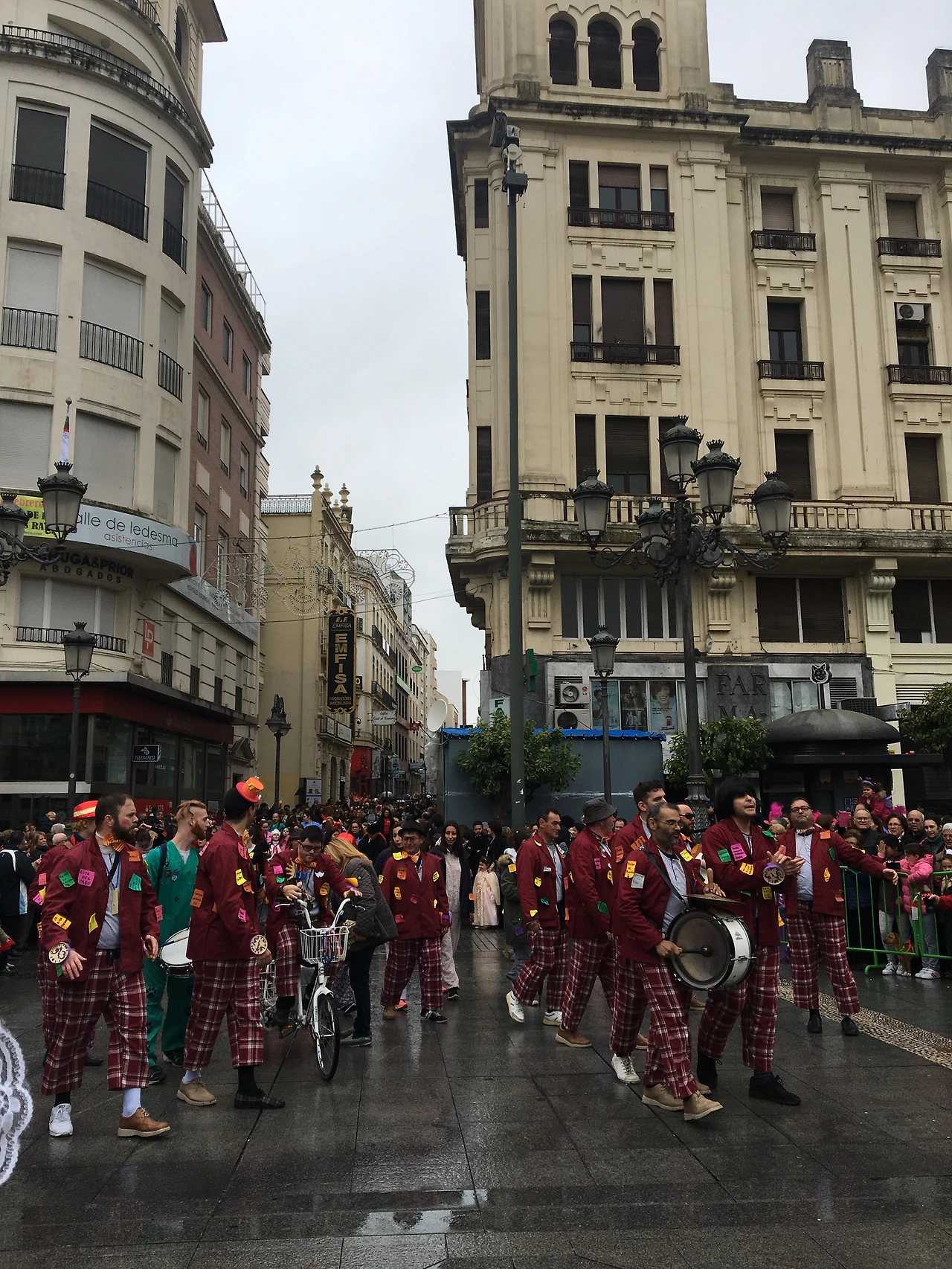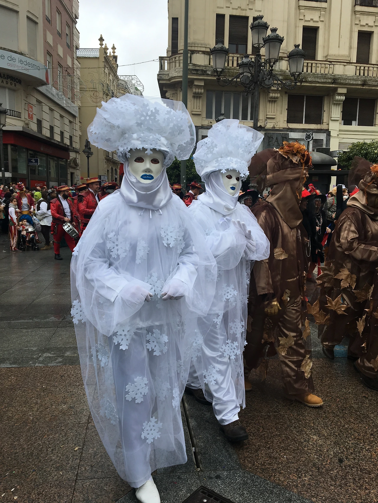 다음날 시청 광장으로 가니 교통을 통제하고 있다. 무슨 일인가 보니 분장을 한 사람들이 차례로 지나가는 카나발이 열리고 있었다. 20~30명씩 되는 사람들이 무리를 지어 변장을 하며 지나가는데 각 팀별로 콘셉트를 정해서 분장을 하고 포즈를 취하는 카나발 퍼레이드였다. 한국에서 크리스마스 때 동네 성당별로 나와 성가 대회를 하는 것처럼 동네마다 지역주민들이 콘셉트를 잡고 퍼레이드를 하는 것 같았다.