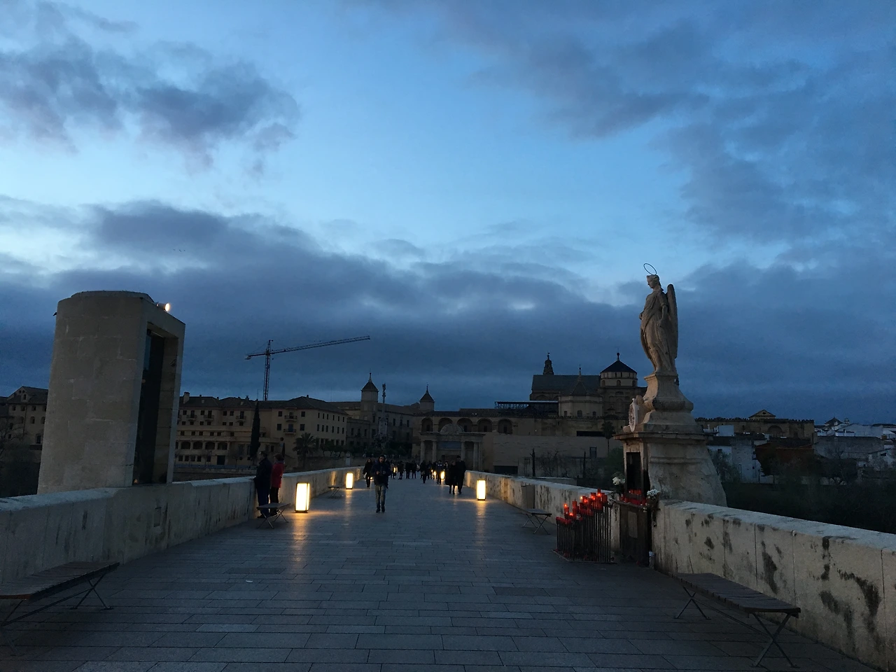 로마인 다리 근처에서는 밤의 행사를 준비하는 사람들을 구경할 수 있었다. 안달루시아 지방에서는 부활절이나 가톨릭의 중요한 기념일에 밤에 화려하게 장식한 성모상이나 십자가를 앞에 세우고 관악대와 함께 퍼레이드를 하는 행사가 전통적으로 열린다. 그라나다에서도 한번 행렬을 따라간 적이 있는데 화려하게 장식한 성모상을 올린 나무로 만든 가마 밑에 사람들이 들어가 가마를 끌고 도시를 돌았다. 맨 앞에서 십자가를 든 사람이 행렬을 이끌고 가마를 든 사람들 뒤에 관악대가 연주를 하며 따른다. 그 행렬을 구경하는 사람들이 따라가며 밤의 퍼레이드가 펼쳐진다. 그 가마를 끄는 예행연습을 이곳 로마인 다리 근처에서 하고 있었다.