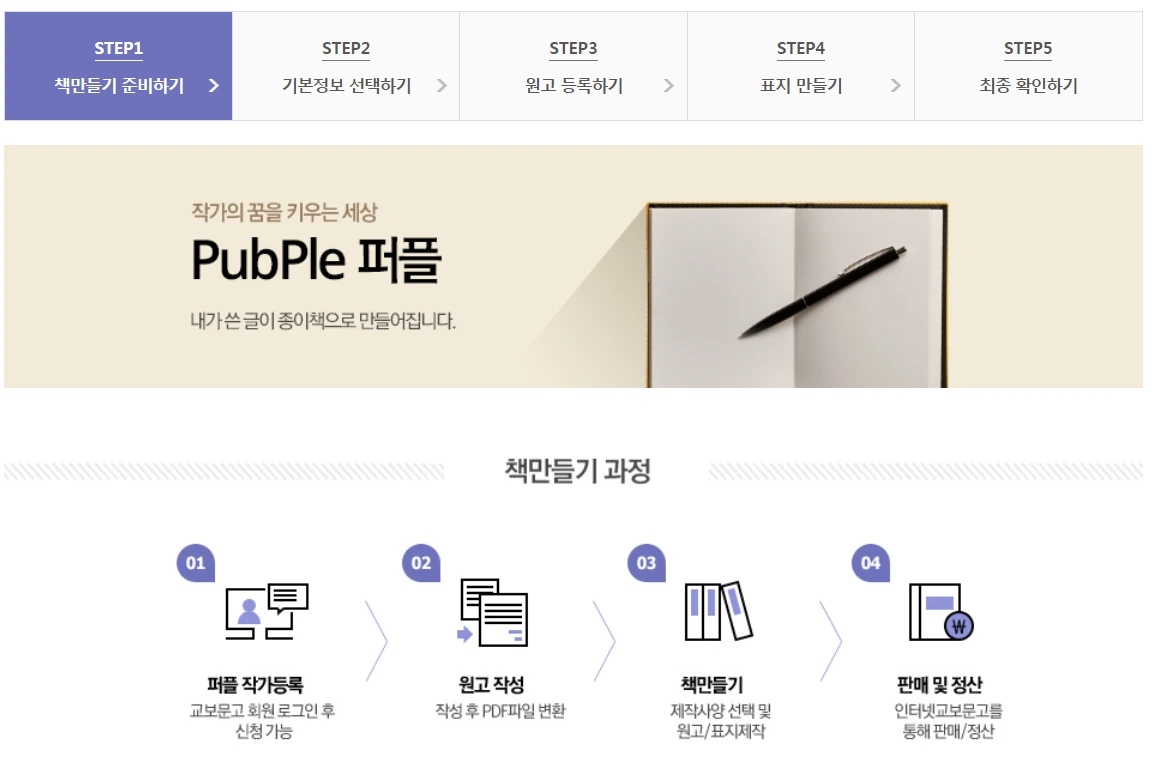 여러가지 고민을 하는 사이 시간이 흘렀고 책을 내고 싶어하는 맘을 아는 친구 중 하나가 교보문고에서 하는 Puple 서비스를 알려주었다.