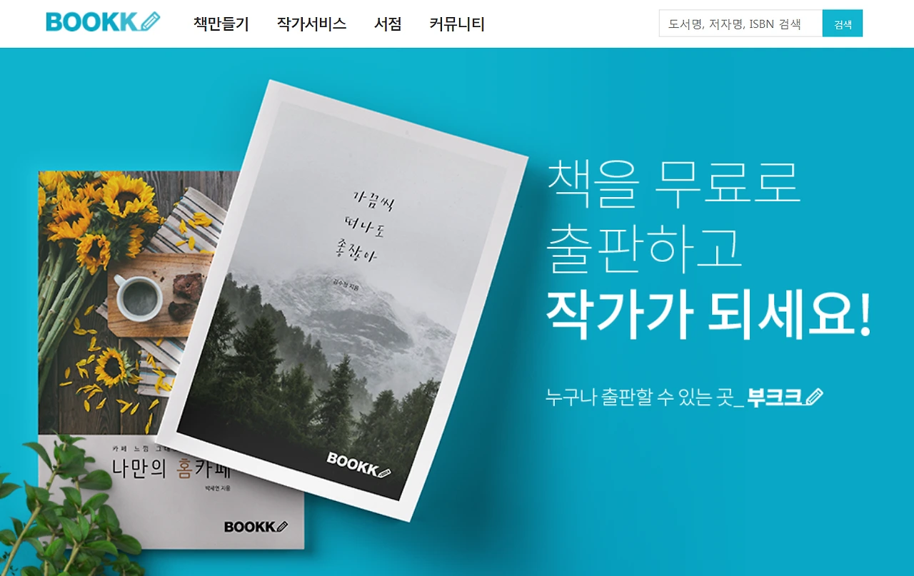 부크크 역시 원고만 올리면 무료로 책을 만들어준다. 현재 24,368종의 도서가 출판중이라는데 전자책과 종이책을 모두 출간할 수 있다. 교보문고 퍼플과의 차이점이라면 퍼플은 인터넷 교보문고 내에서만 책을 판매할 수 있는데 반해 부크크에서는 알라딘, yes24 인터넷 서점에도 유통이 가능하다.