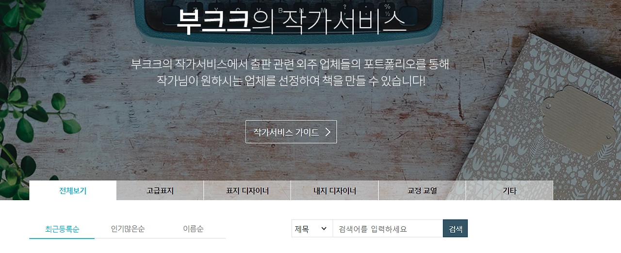 작가서비스 메뉴에서는 표지나 내지 디자이너 서비스를 구매할 수 있다. 보통 원고만 있고 표지 디자인은 직접하기 힘든데 전문작가의 표지 디자인 구매가 가능해서 편리해보인다. 원고 등록 후에 샘플신청을 통해 샘플을 먼저 받아볼 수 있다는 점도 장점인 것 같다.