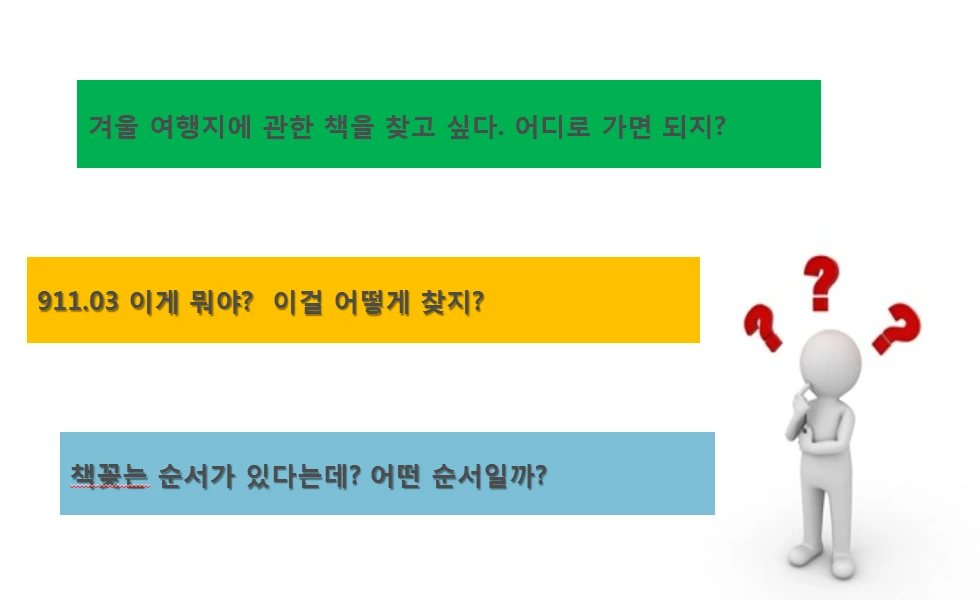 도서관에 갔을 때 한 번쯤 해봤을 만한 고민들이다. 책을 찾고 싶은데 어디에 있는지도 모르겠고 책에 붙어있는 숫자는 알쏭달쏭하다.