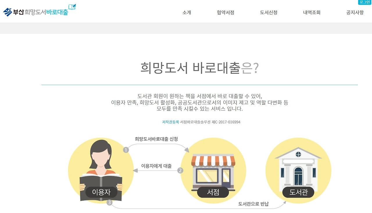 도서관이 지정한 지역서점(지역서점 활성화 정책의 일환으로 대형서점은 지원하지 않는다.)에서 책을 대출하고 도서관으로 반납하면 그 책을 도서관 장서로 편입하는 제도다.