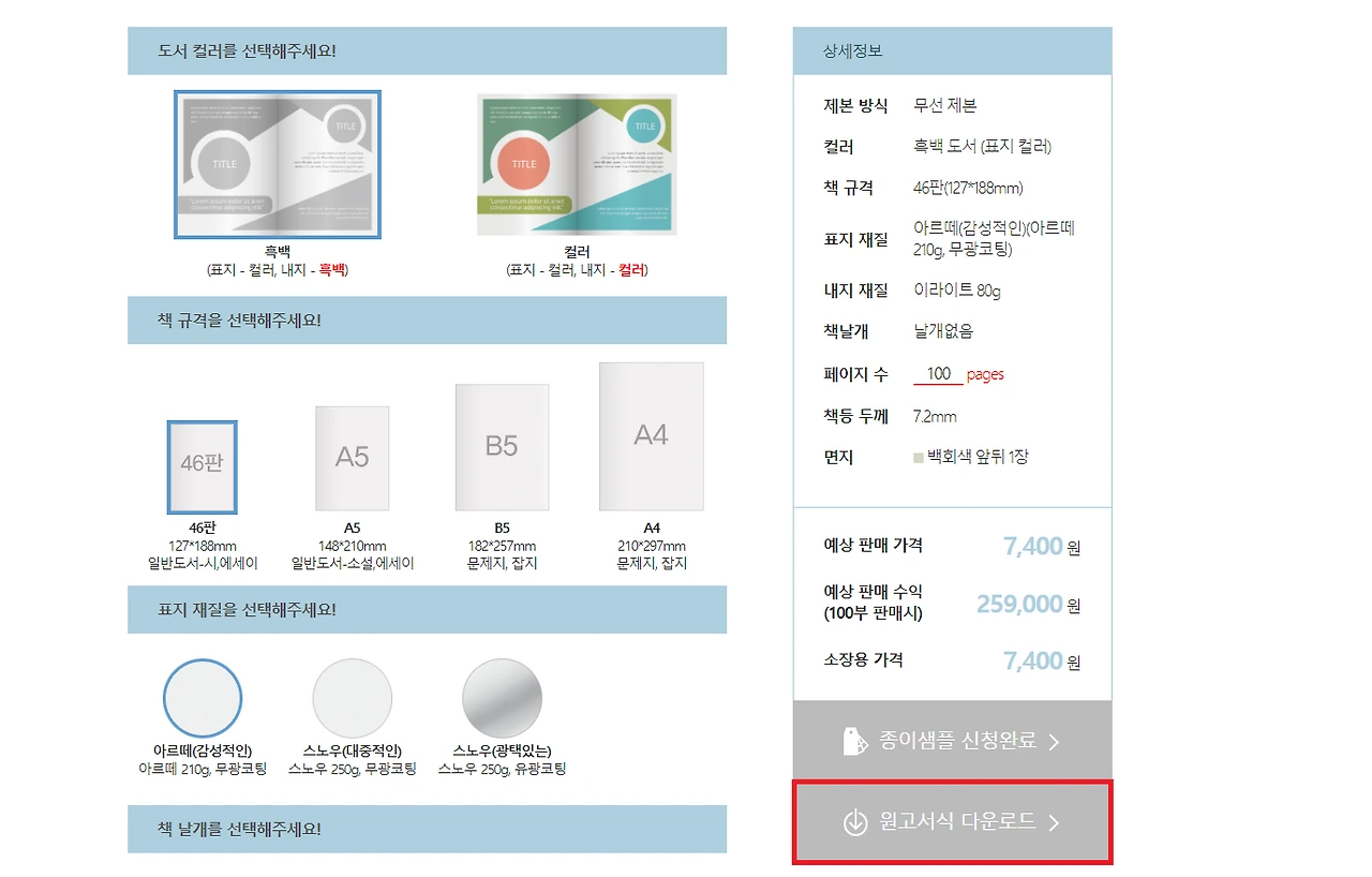 책 디자인을 하시는 전문가분들이 여럿 나와서 포트폴리오를 보고 원하는 스타일의 디자이너 분에게 견적요청을 드렸다. 다양한 가격이 나왔는데 원고의 분량이 많다 보니 비용이 비쌌다. 가장 저렴하게 부르신 분은 30만 원 정도를 이야기하셨고 가장 마음에 들었던 전문가는 200만 원을 이야기했다.