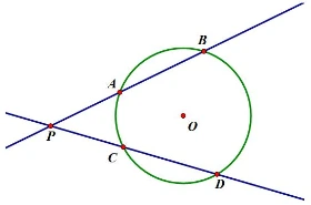 원 O와 원의 외부에 있는 한 점 P가 고정되어 있을 때, 점 P를 지나는 직선이 원과 만나는 두 점을 A, B라고 하면, 직선 PAB가 어떻게 변해도 PA*PB의 값은 변하지 않는 일정한 불변량이 됩니다.