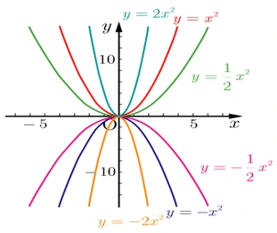 예를 들어 함수 y=2x에서 x와 y값들은 변하지만, 기울기 2는 언제나 변하지 않는 고정된 값입니다. 이차함수 y=ax^2을 볼까요? 이 함수의 a값에 여러 가지 값을 대입해 귀납적으로 확인해보면, 어떤 경우에도 원점 을 지나는 포물선이 된다는 사실을 알 수 있습니다.