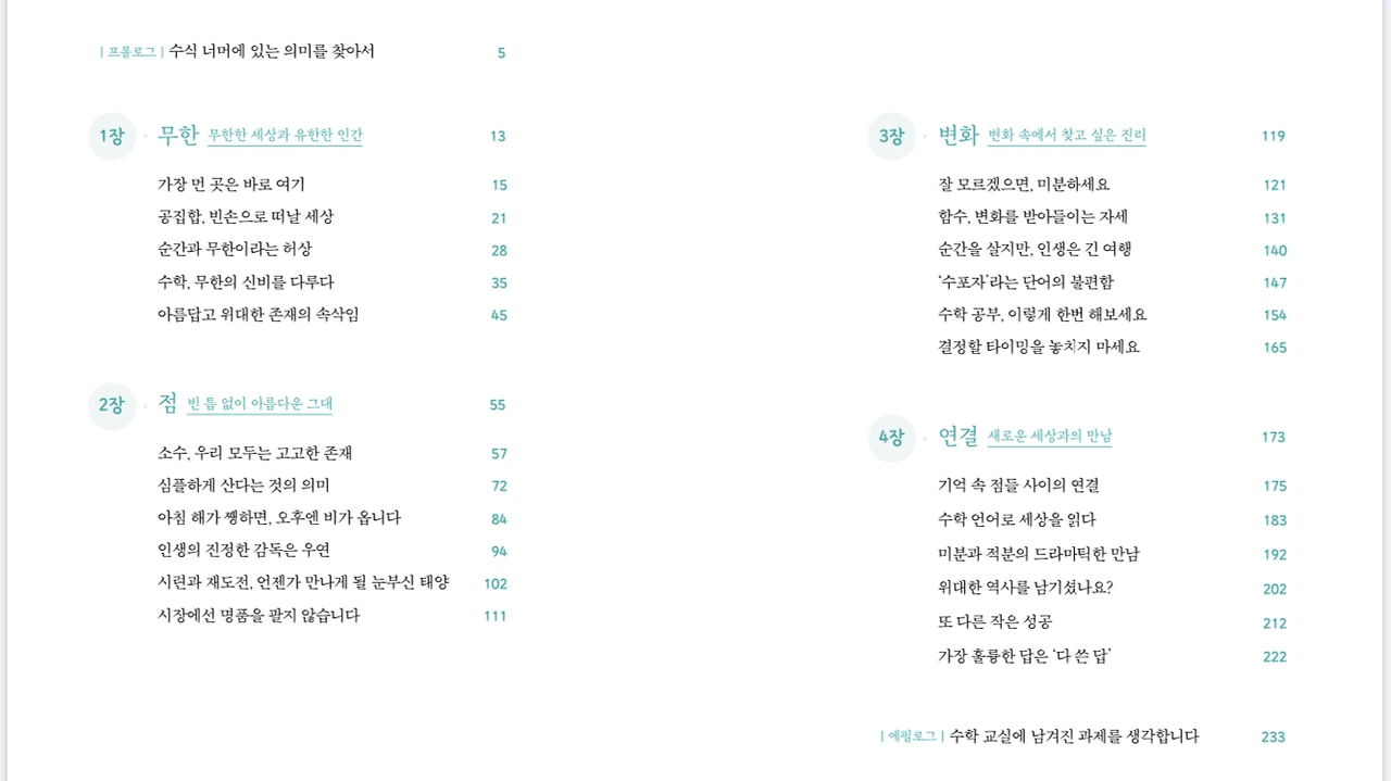책장을 넘기면서 수학을 통해 어떻게 나를 만날 수 있는지 고민할 수 있을 것이다. 무엇보다 삶의 깊은 지혜의 조각들을 엮어 아름다운 인생 그림을 그릴 수 있을 것이다.
