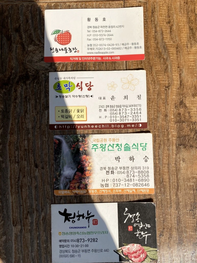 그리고 상주하시는 직원? 분께 주변 맛집을 여쭤봤더니 갑자기 명함들을 주섬주섬 꺼내 보여주신다.