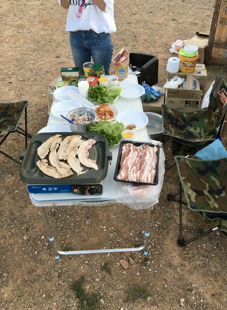 버너, 냄비, 쌈장, 물 모든 재료는 집에서 챙겨 왔다.