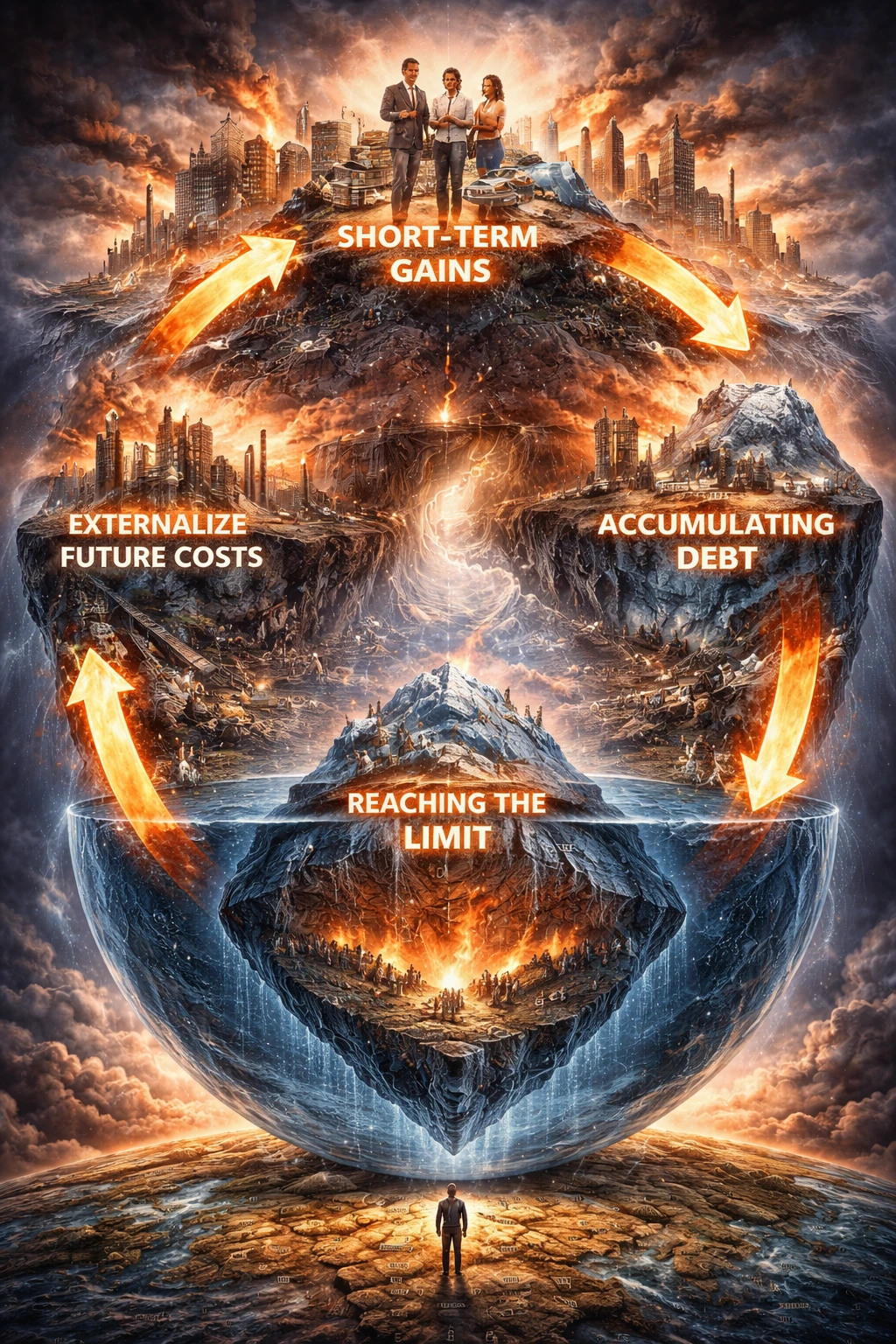 지금까지 우리는 여러 현상을 살펴보았다. 미래를 소비하는 구조, 기반의 붕괴, 보이지 않는 부채, 자유의 역설은 서로 다른 문제가 아니다. 이들은 하나의 공통된 메커니즘 위에서 작동한다.
