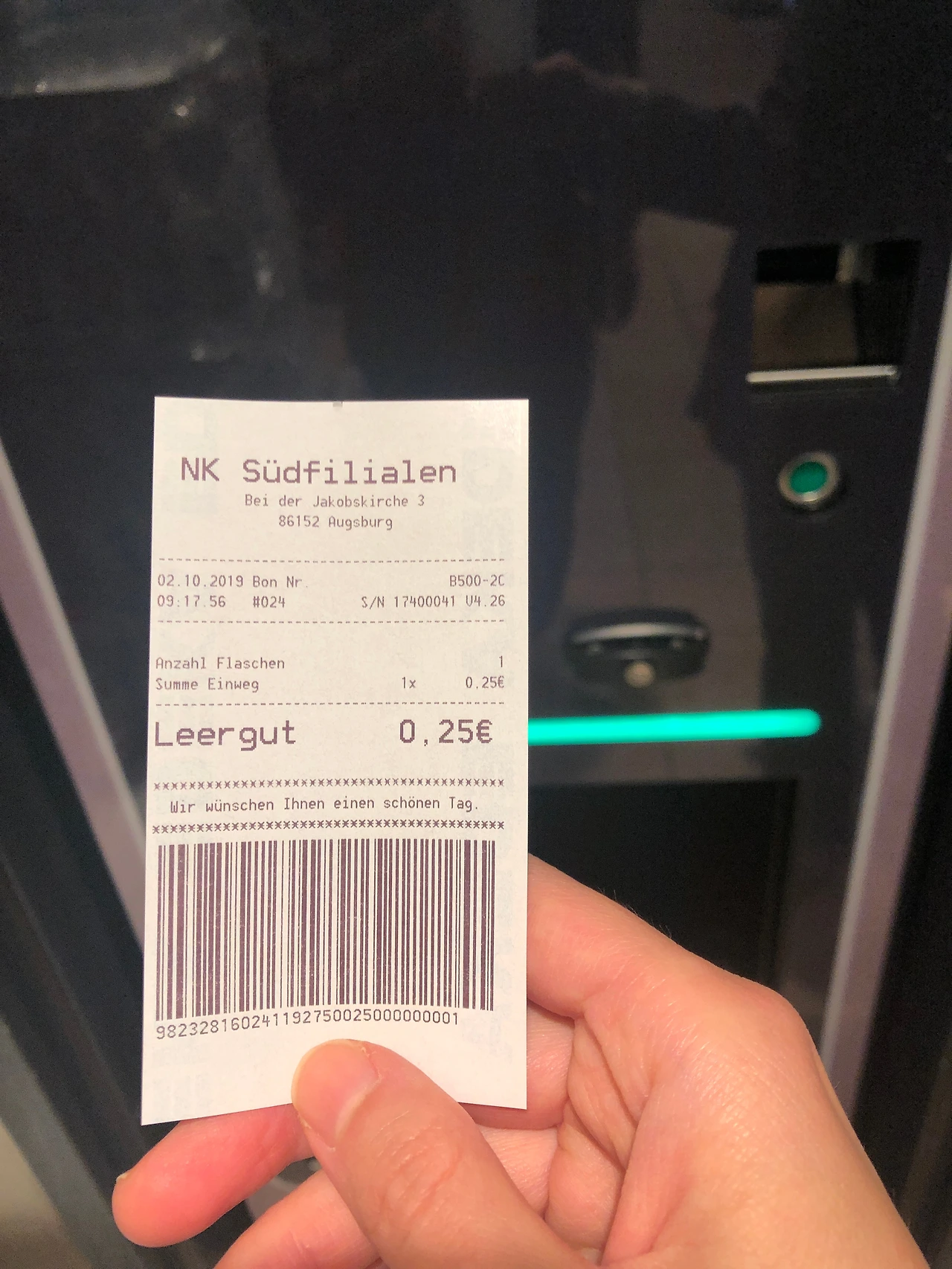 오래된 독일 여행 사진을 뒤져 빈병 수거 기계를 이용했던 사진을 찾았다. 받은 표에 0.25유로라고 적혀있다. 우리 돈 330원 정도. 페트병이 여러 병 모이면 결코 적지 않은 돈이다.