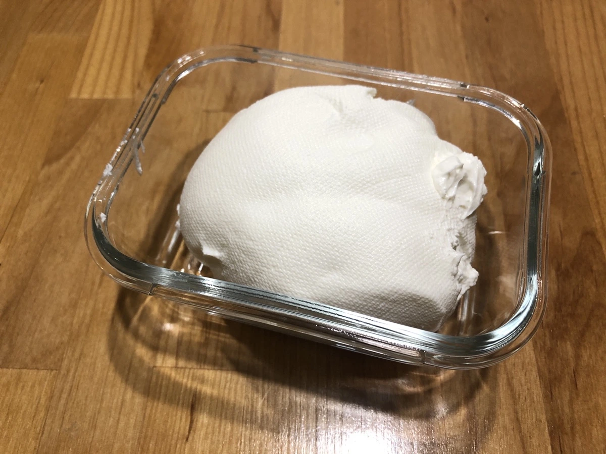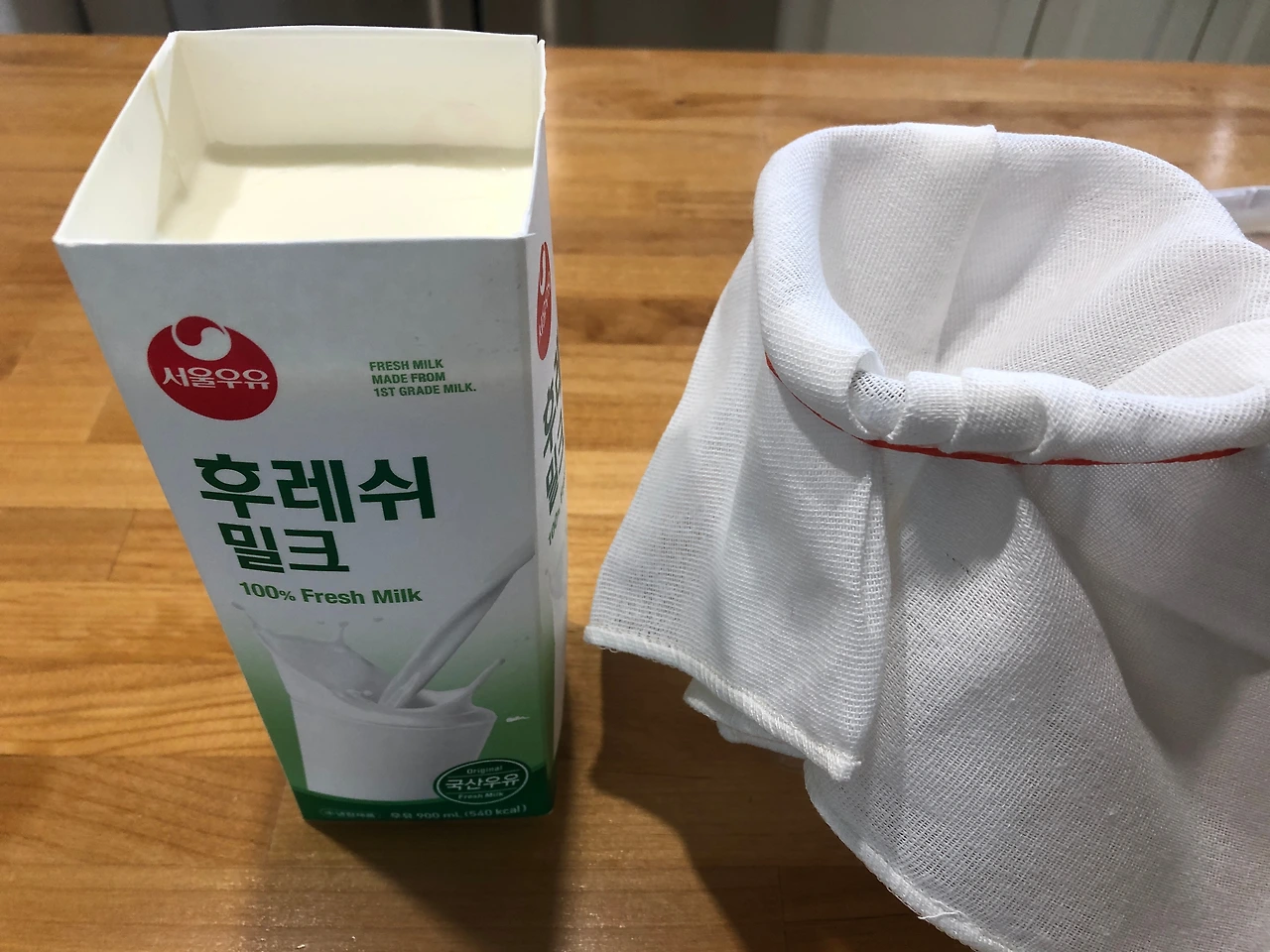 6. 대여섯 시간 후 꺼내보면 이만큼이나 유청이 빠진 걸 볼 수 있다.
