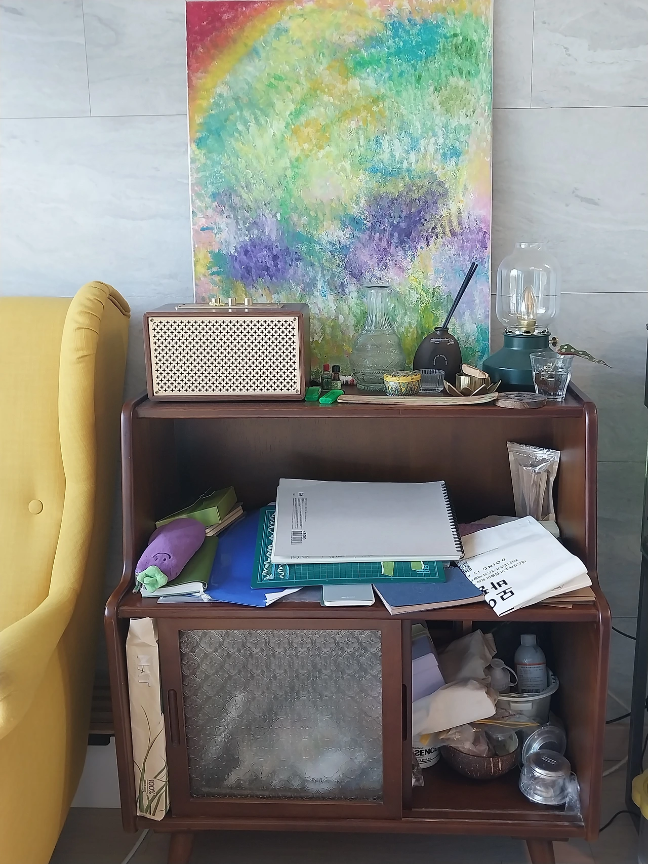 이 수납장에는 그대로 그림 관련 용품들을 넣어두었다.