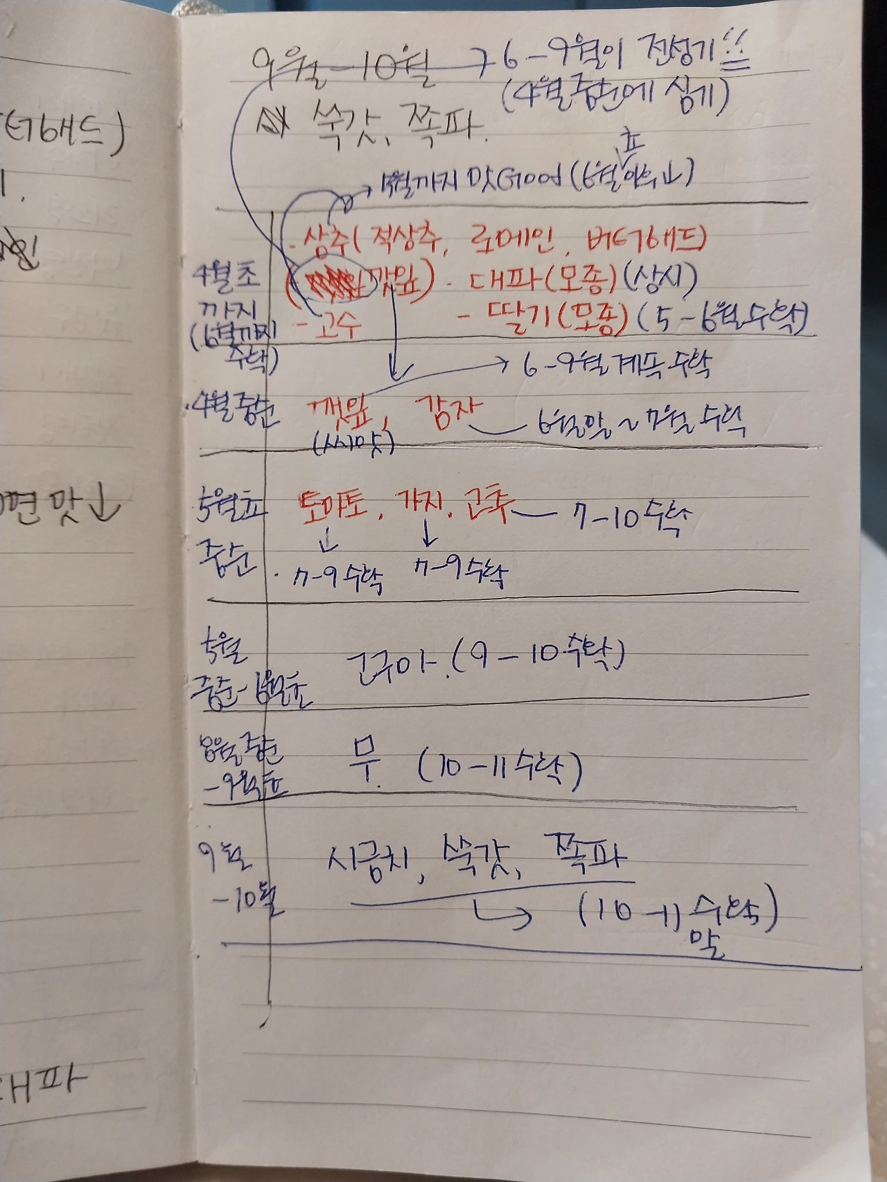 모종 심기 시기와 수확시기를 꼼꼼하게 체크했다.