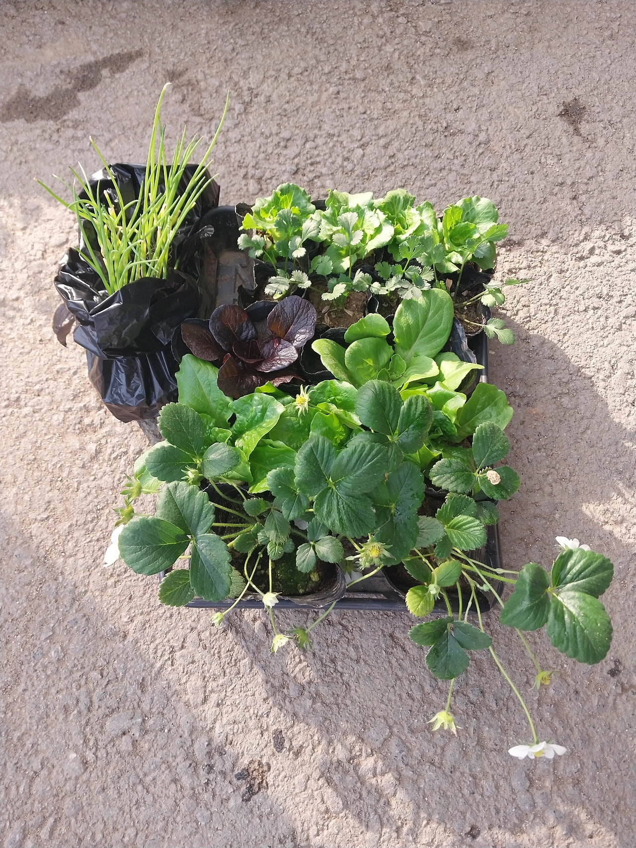 대파, 딸기, 고수, 버터헤드 상추, 리틀잼 상추, 청상추 모종을 샀다.