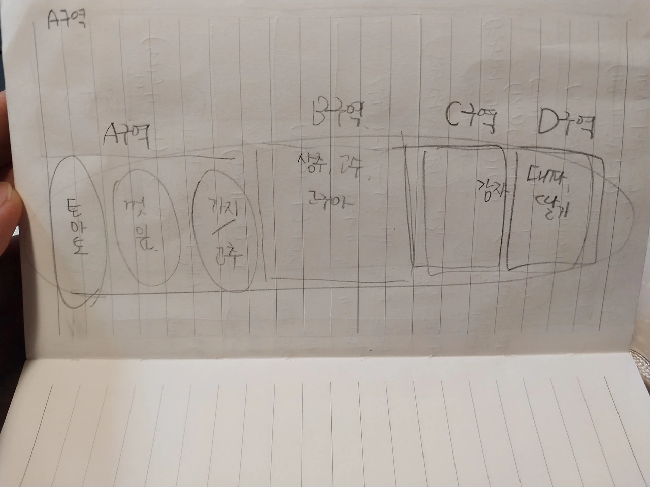 어디에 뭘 심을지 노트에 적어봄..
