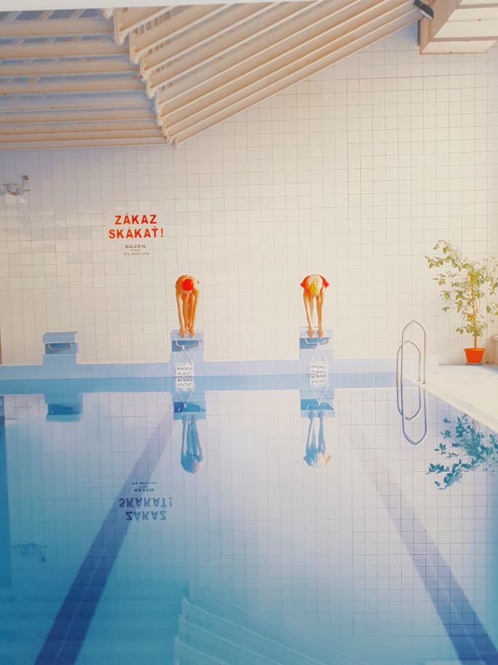 수영장과 밝은 햇살, 수영수트를 입은 사람들 이라는 소재를 완전히 색다르게 해석한 작품들이었다.