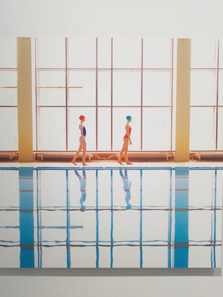 팝아트적인 느낌이 나면서도 작가만의 독창적인 매력이 어우러지는 작품들도 있었다. 이 작가는 사회주의의 영향을 받아, 배경과 대비되는 인물들의 형식적이고 딱딱한 모습을 묘사하고자 했다. 처음 작품을 봤을 떄는 색채가 굉장히 비비드하고 온도가 높다고 생각했는데, 보면 볼수록 수영장 물의 냉담함과 사진 전체적으로 느껴지는 묘한 긴장감이 작품의 이미지를 좌우하게 된다.