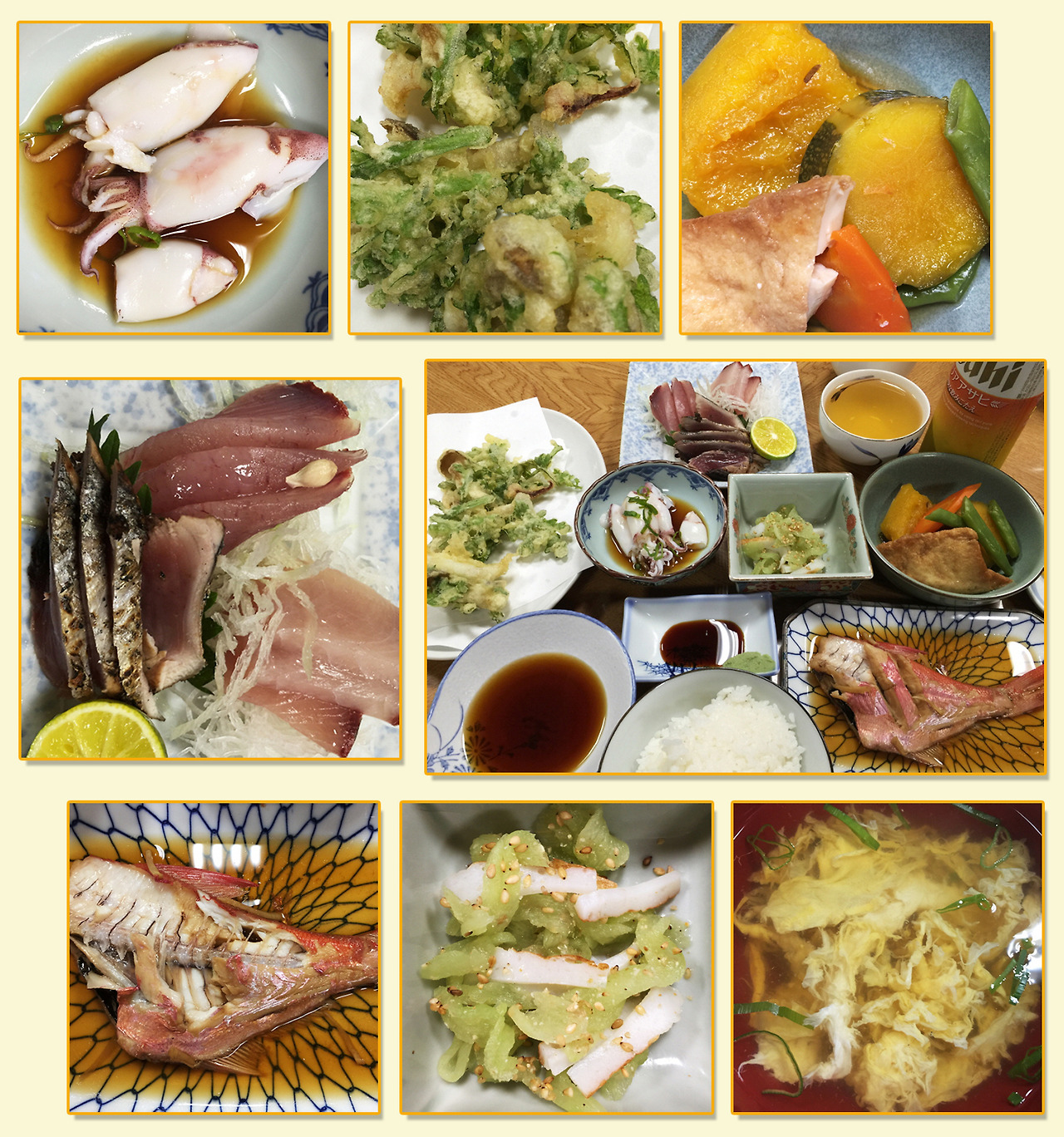 민슈쿠 도쿠마스의 저녁도 나름 괜찮다. 정말 어촌이 아니면 불가능할 것 같은 밥상이다.