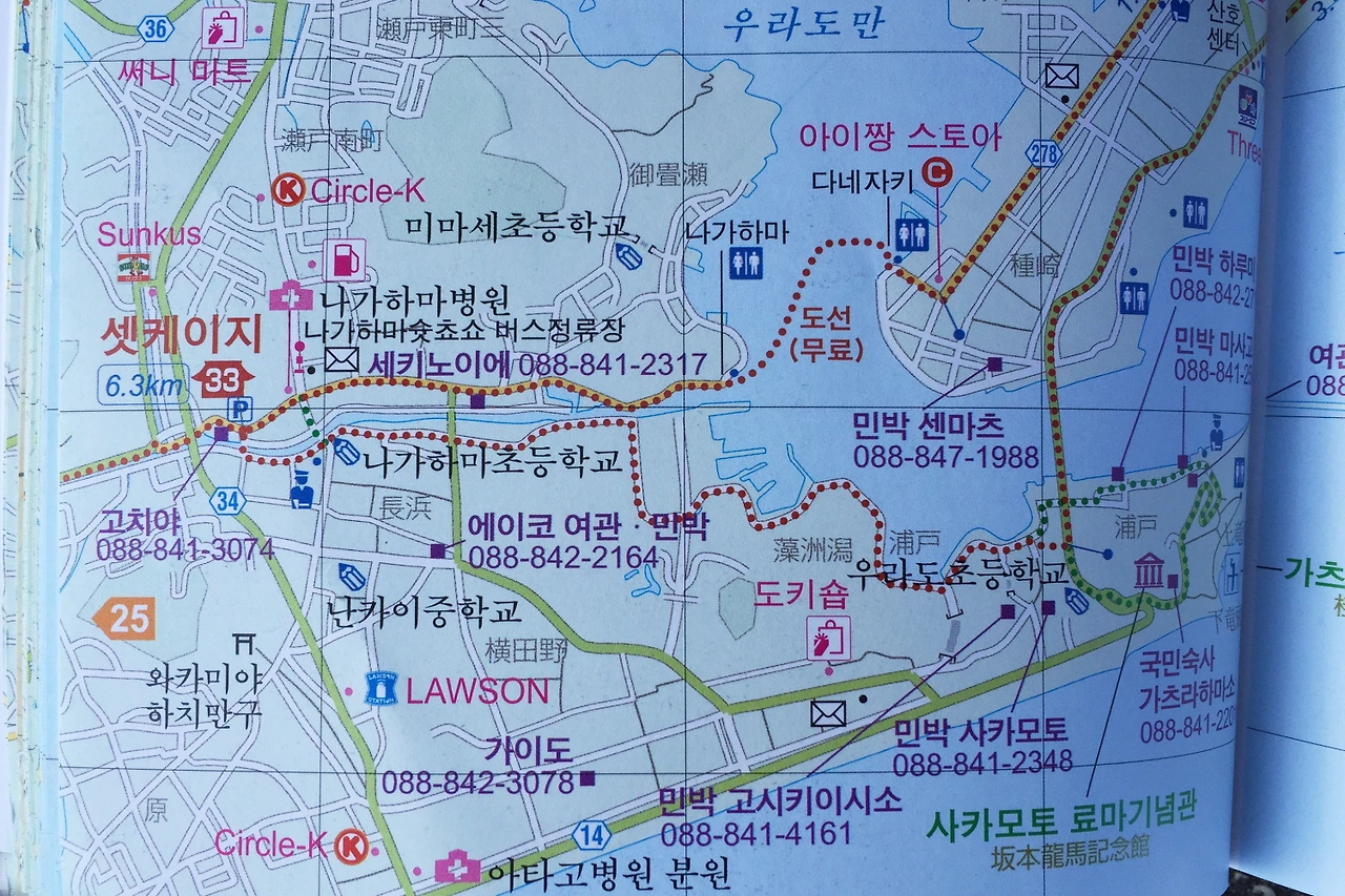 사실, 우라토대교를 건너면 지척에, 관광지로도 유명한 가츠라하마에 일본 근대 역사의 한 획을 긋는 인물 사카모토 료마의 기념관이 있다. 고치현 토사번의 하급 무사의 아들로 태어나 대정봉환운동의 선구에 서고, 막부타도에 결정적인 역할을 하여 일본이 메이지유신과 근대국가로 나아가는 토대를 마련한 인물, 33세의 나이에 막부에 의해 암살되었으나 도쿠가와 이에야쓰, 오다 노부나가에 버금가게 역사적인 추앙을 받는 사카모토 료마의 기념관에도 들러볼 일이나, 일본의 근대화에 지대한 공헌을 했다면 직간접적으론 사후일지라도 일제 강점기와 무관하지 않은 인물이라 치부하며 일부러 가보고 싶지 않다는 구실을 가지 못하는 핑겟거리로 삼는다.