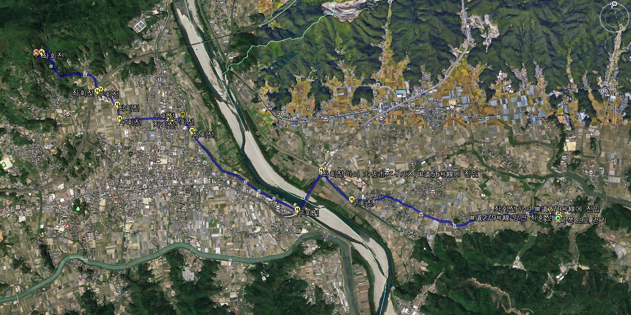 남쪽으로 토사시를 관통해서는 요코세야마의 츠카지자카터널(塚地坂トンネル)을 지난다. 산을 거쳐서 가는 우회도로도 있지만 빨리 가고 싶은 마음에 터널로 들어섰는데 이게 또 거리가 장장 1킬로에 육박한다. 비상전화를 사용해보고 싶은 충동에 휘말리게 하는 터널이다.