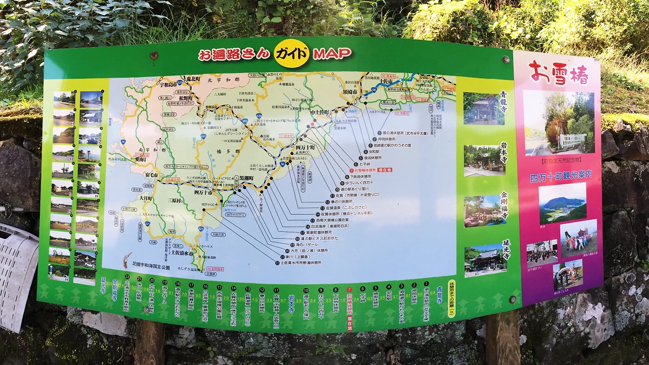 이후로는 쭉 56번도로나 그 이면도로를 따라가는 길이다. 때마침 나타나 준 오헨로휴게소에서 간식과 음료를 먹으면서 잠시 쉬어간다. 혼자서는 한가롭게 휴식을 취할 마음의 여유도 없는데 사코상이 편안해서인지 휴식도 꿀맛이다. 사코상과 수다를 떨었던 그 오지상도 앞서거니 뒤서거니 같이 걷기도 하고, 같이 쉬기도 한다. 한동안 안보였던 기타야마상, 고치현 초반부에서 자주 만났던 그 분도 다시 보이기 시작한다. 이 길에서 만남과 헤어짐을 반복하는 우리들은 불가에서 말하는 그 몇겁의 인연을 쌓았던 걸까. 이 길에서 만나는 모든 순례자들에게 점점 측은지심을 가지게 된다.