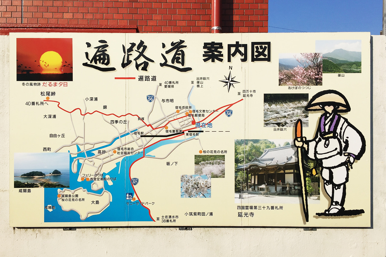 우와지마까지의 버스노선에 앞으로 걸을 40번 간지자이지(観自在寺), 41번 류코지(龍光寺)까지의 순례길도 이어진다. 사코상을 너무 오래 기다리게 할 수는 없으므로(?) 휴식 후의 일정은 우와지마에서 스쿠모까지가 아니라 간지자이지 입구까지 버스로 이동 예정이다. 그러므로 이 구간, 약 20여 킬로는 세번째로 걷지 않은 길이 되겠다.